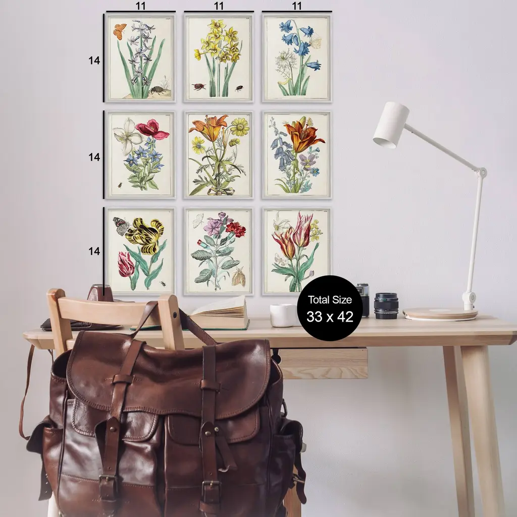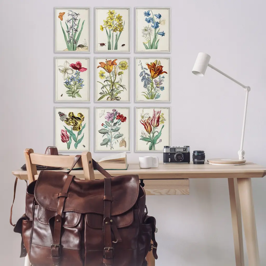 Fill any space in your home or office with our Framed Wall Art Sets. Our framed artwork is securely mounted into a 1.5-inch thick wood grain frame and ready to hang. Frames are available in three alluring styles: black, gray farmhouse and white. Stupell Wall Art is made in the USA.Features: Dimensions: 9 Piece Set, Each Panel is 11 x 1.5 x 14 FramedWall Art is Ready to Hang with Hardware Free Hanging. No installation required. For Easy Set Up Lean or Layer Artwork on Shelf or Against Wall.Curated Wall Art Sets make it easy for you complete the theme for any room. Our giclée prints are carefully mounted on a durable MDF backing, and then perfectly finished in a 1.5 inch thick woodgrain frame. Mounted frame colors include black, gray farmhouse and white. Made In USA.Artwork Relates To: Flower, Plant, Anther, Floral, Petal, Botanical, Leaf, Vintage, Study, Insect, Butterfly, Moth, Bee, BeetleDesign by World Art Group