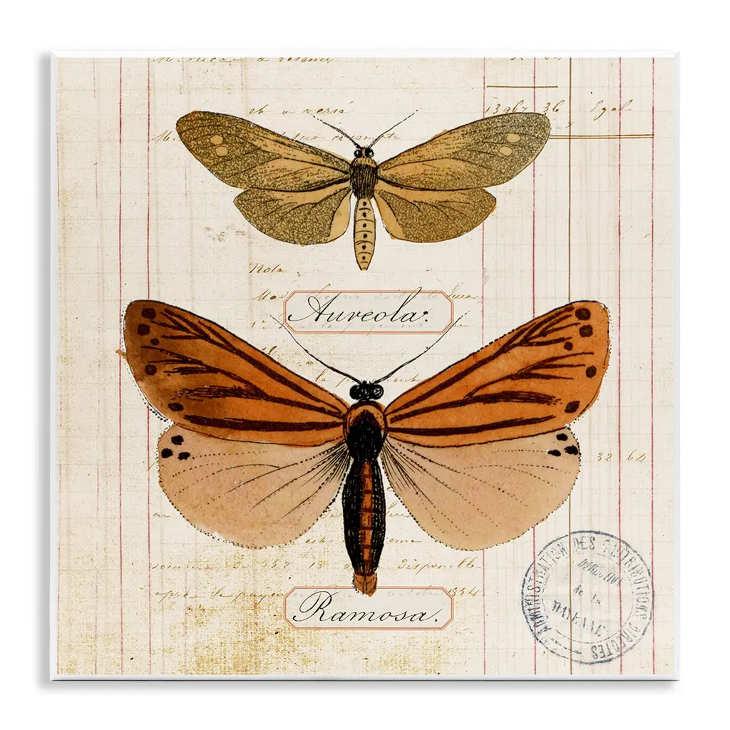 Our wall plaques start as high-quality lithograph prints mounted on durable 0.5-inch thick MDF wood. Each piece is hand finished and comes with a fresh layer of white foil on the sides to give it a crisp, clean look. Plaques arrive ready to hang without installation and come with removable plastic corners to keep them from damage in transit. Stupell Wall Art is made in the USA.Features: Dimensions: 12 x 0.5 x 12 InchesWall Art is Ready to Hang with Hardware Free Hanging. No installation required. For Easy Set Up Lean or Layer Artwork on Shelf or Against Wall.All of our wall plaques start off as high quality lithograph prints that are then mounted on durable 0.5 inch thick MDF wood. Each piece is hand finished and comes with a fresh layer of foil on the sides to give it a crisp clean look. Made In USA.Artwork Relates To: Insect, Bug, Butterfly, Diagram, Study, Vintage, AntiqueDesign by Susan Arnot