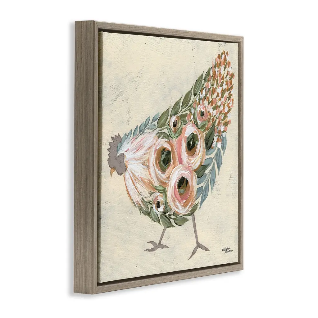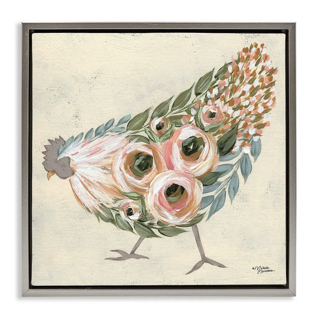 Elevate your home or office to the next level with Stupell Framed Floating Canvas Wall Art. Our premium hand-stretched canvas is mounted securely into a sturdy lightweight frame. The museum-style gap between the wrapped canvas and the box frame gives the illusion of floating artwork. Stupell Wall Art is made in the USA.Features: Dimensions: 18 x 1.7 x 18 Frame, 17 x 1.5 x 17 Canvas ArtFloating Frame Canvas Products are available in sizes 18"x18" and 25"x25". All Floating Frame Canvas Products have a 1.7" Depth.Wall Art is Ready to Hang with Hardware Free Hanging. No Installation required. For Easy Set Up Lean or Layer Artwork on Shelf or Against Wall. Artwork is Permently Fixed into the Frame.Our elevated 1.7" Thick Floating Frame is the perfect complement to our canvas style Wall Art. We use only the highest quality inks in house with industry leading printing solutions. Canvas is hand stretched over a durable wood foundation and then mounted securly into a Modern Box Frame. Made in the USA.Artwork Relates To: Country, Farmhouse, Floral, Flower, ChickenDesign by Michele Norman