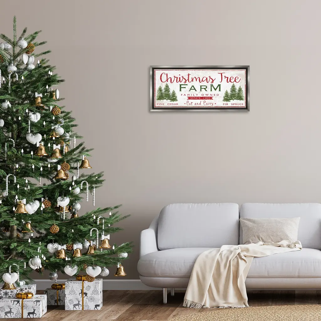 Elevate your home or office to the next level with Stupell Framed Floating Canvas Wall Art. Our premium hand-stretched canvas is mounted securely into a sturdy lightweight frame. The museum-style gap between the wrapped canvas and the box frame gives the illusion of floating artwork. Stupell Wall Art is made in the USA.Features: Dimensions: 25 x 1.7 x 11 Frame, 24 x 1.5 x 10 Canvas ArtFloating Frame Canvas Products are available in sizes 25"x11" and 31"x14". All Floating Frame Canvas Products have a 1.7" Depth.Wall Art is Ready to Hang with Hardware Free Hanging. No Installation required. For Easy Set Up Lean or Layer Artwork on Shelf or Against Wall. Artwork is Permently Fixed into the Frame.Our elevated 1.7" Thick Floating Frame is the perfect complement to our canvas style Wall Art. We use only the highest quality inks in house with industry leading printing solutions. Canvas is hand stretched over a durable wood foundation and then mounted securly into a Modern Box Frame. Made in the USA.Artwork Relates To: Holiday, Christmas, Farmhouse, Rustic, Tree, Country, VintageDesign by P.S. Art