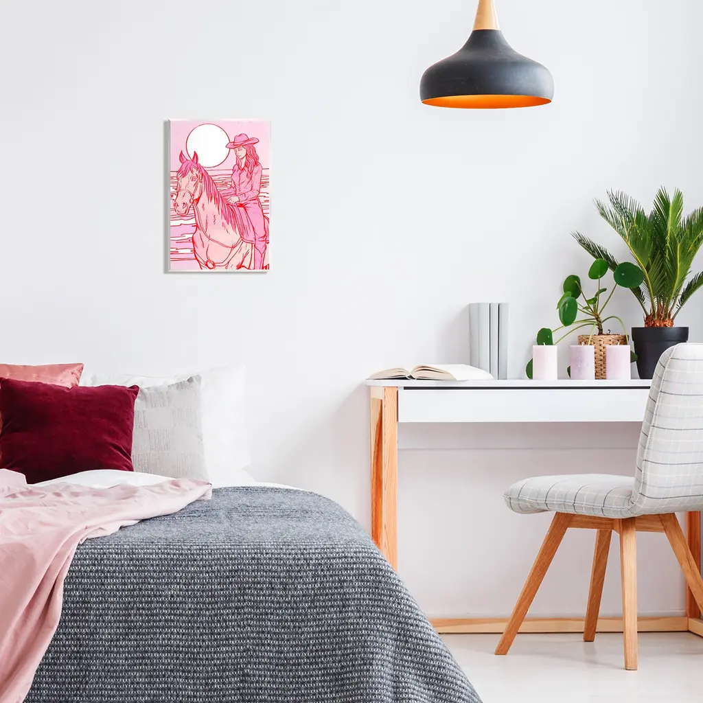 Our wall plaques start as high-quality lithograph prints mounted on durable 0.5-inch thick MDF wood. Each piece is hand finished and comes with a fresh layer of white foil on the sides to give it a crisp, clean look. Plaques arrive ready to hang without installation and come with removable plastic corners to keep them from damage in transit. Wall Art is made in the USA.Features: Dimensions: 10 x 0.5 x 15 InchesWall Plaque Sizes Include Standard: 10 x 0.5 x 15 Oversized: 13 x 0.5 x 19Wall Art is Ready to Hang with Hardware Free Hanging. No installation required. For Easy Set Up Lean or Layer Artwork on Shelf or Against Wall.All of our wall plaques start off as high quality lithograph prints that are then mounted on durable 0.5 inch thick MDF wood. Each piece is hand finished and comes with a fresh layer of foil on the sides to give it a crisp clean look. Made In USA.Artwork Relates To: Cowgirl, Beach, Sun, Horse, VintageDesign by Ziwei Li