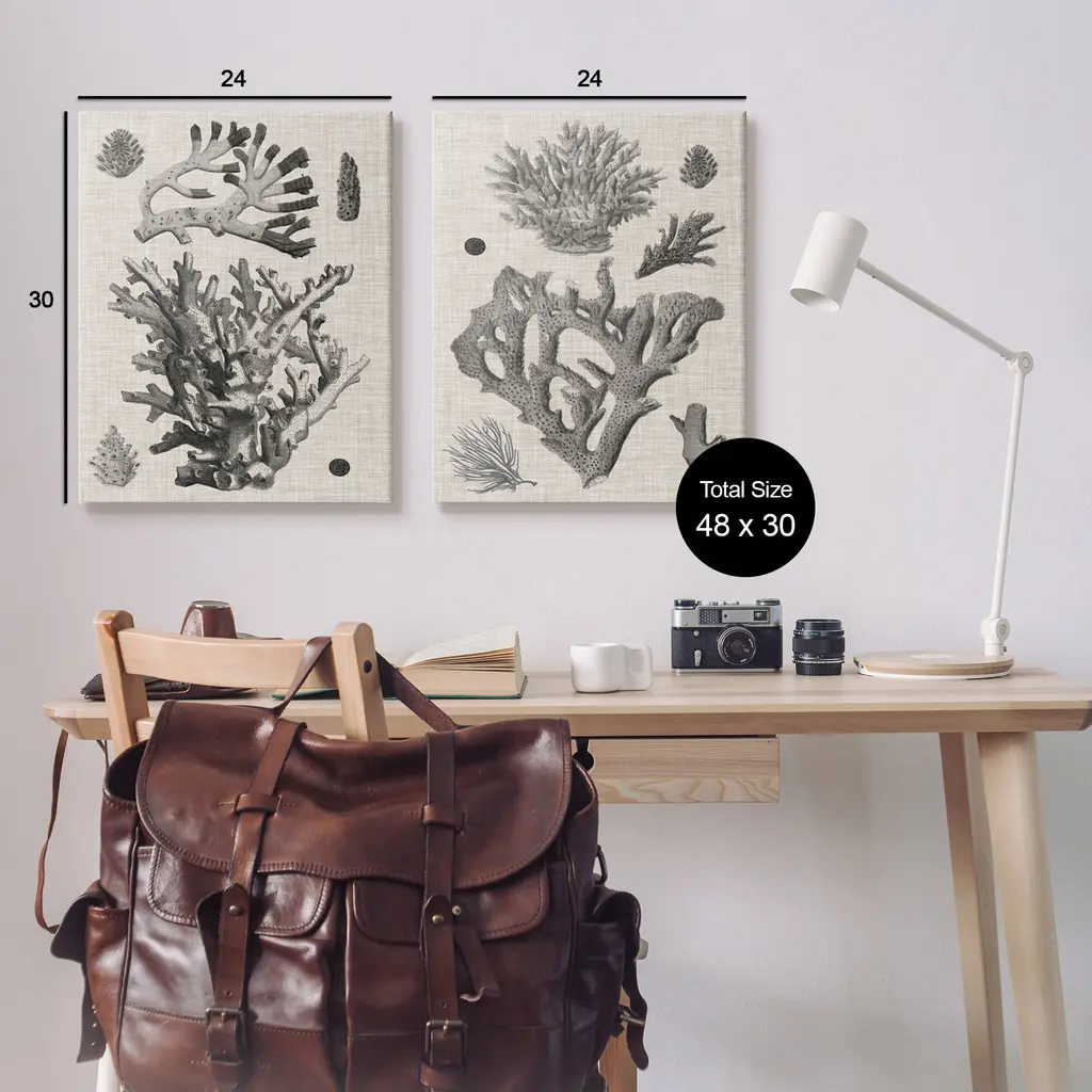 Stupell Vintage Coral Study 2 Piece Canvas Wall Art Set Design By Vision Studio - 24 X 30