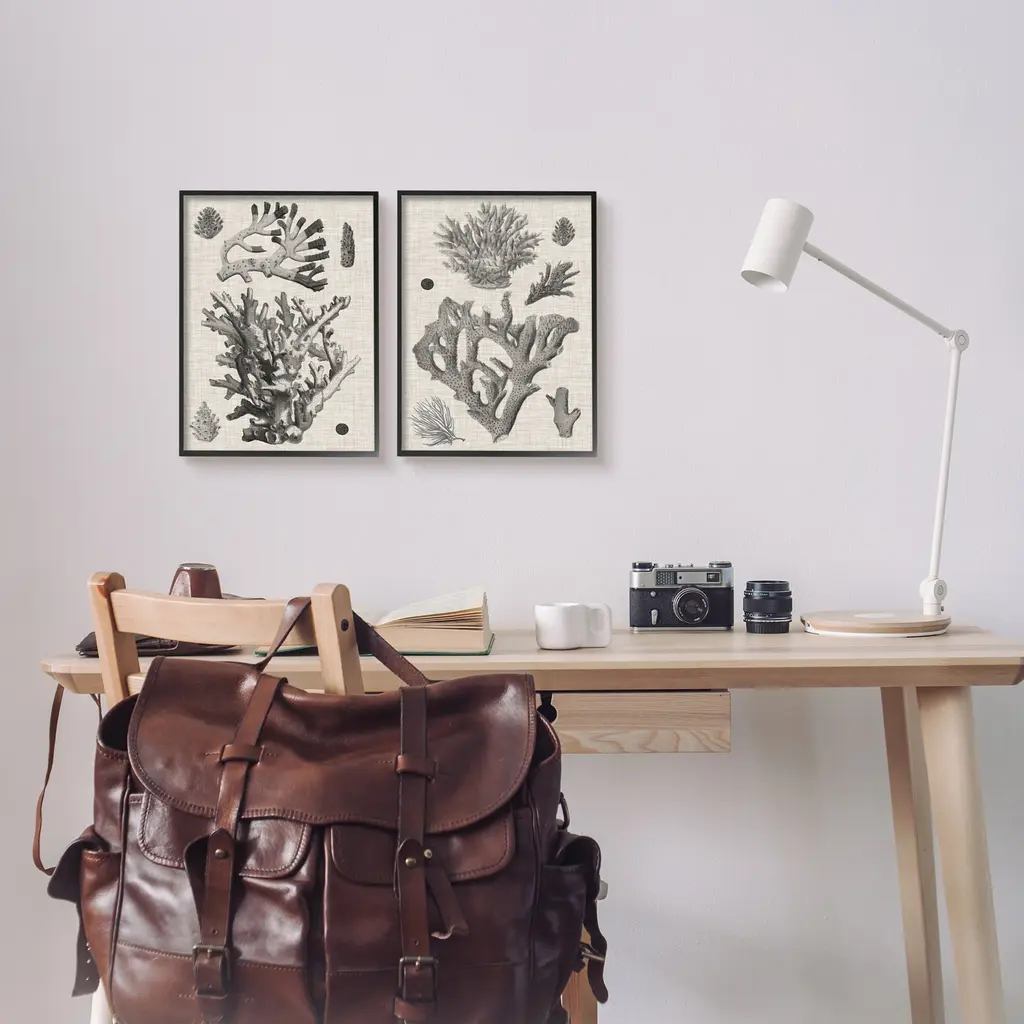 Fill any space in your home or office with our Framed Wall Art Sets. Our framed artwork is securely mounted into a 1.5-inch thick wood grain frame and ready to hang. Frames are available in three alluring styles: black, gray farmhouse and white. Stupell Wall Art is made in the USA.Features: Dimensions: 2 Piece Set, Each Panel is 11 x 1.5 x 14 FramedFramed Giclee Set Sizes Include Standard: 2pc, Each is 11 x 1.5 x 14 Large: 2pc, Each is 16 x 1.5 x 20 Oversized: 2pc, Each is 24 x 1.5 x 30Wall Art is Ready to Hang with Hardware Free Hanging. No installation required. For Easy Set Up Lean or Layer Artwork on Shelf or Against Wall.Curated Wall Art Sets make it easy for you complete the theme for any room. Our giclée prints are carefully mounted on a durable MDF backing, and then perfectly finished in a 1.5 inch thick woodgrain frame. Mounted frame colors include black, gray farmhouse and white. Made In USA.Artwork Relates To: Sea Life, Coral, Vintage, Latin StudyDesign by Vision Studio
