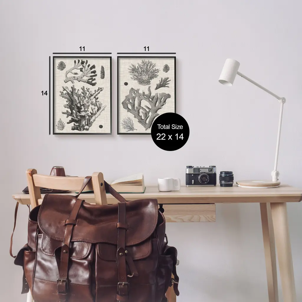 Stupell Vintage Coral Study 2 Piece Framed Giclee Art Set Design By Vision Studio - 11 X 14 - Black