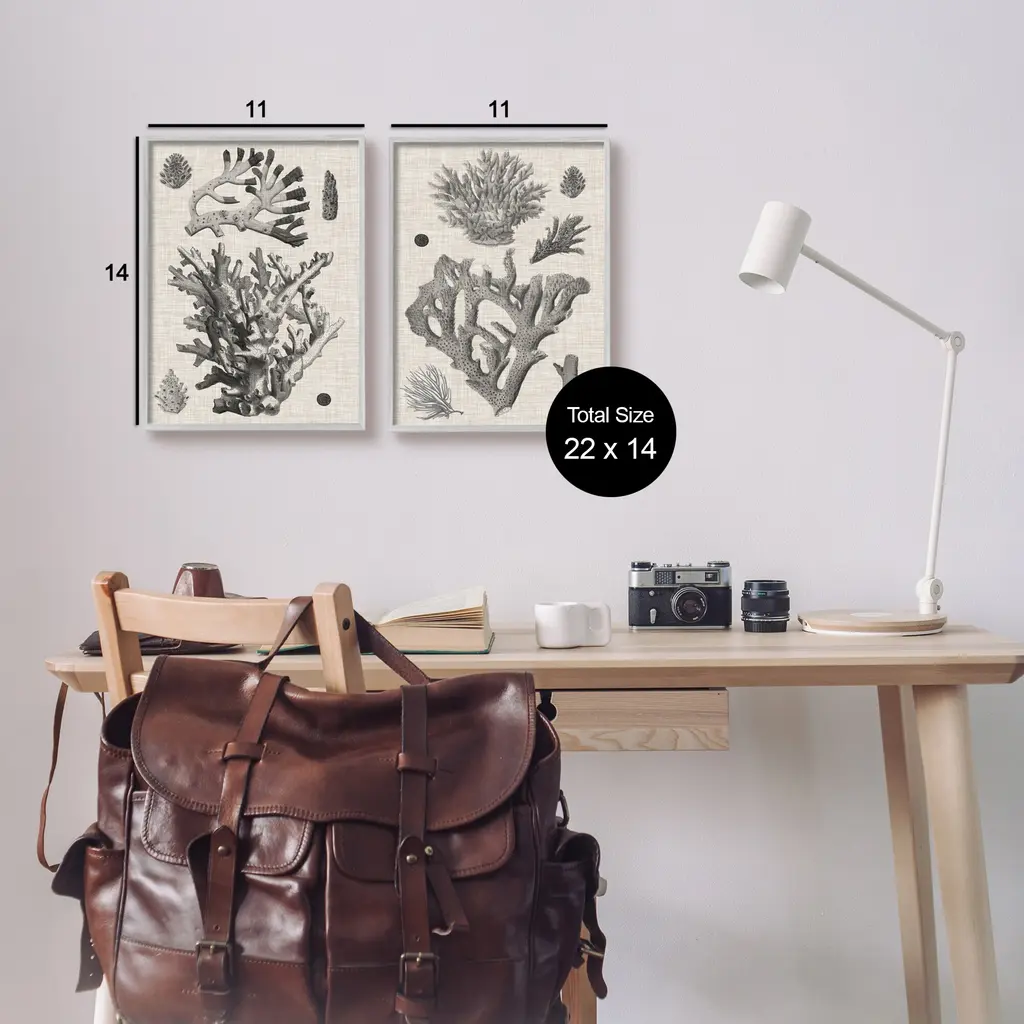 Fill any space in your home or office with our Framed Wall Art Sets. Our framed artwork is securely mounted into a 1.5-inch thick wood grain frame and ready to hang. Frames are available in three alluring styles: black, gray farmhouse and white. Stupell Wall Art is made in the USA.Features: Dimensions: 2 Piece Set, Each Panel is 11 x 1.5 x 14 FramedFramed Giclee Set Sizes Include Standard: 2pc, Each is 11 x 1.5 x 14 Large: 2pc, Each is 16 x 1.5 x 20 Oversized: 2pc, Each is 24 x 1.5 x 30Wall Art is Ready to Hang with Hardware Free Hanging. No installation required. For Easy Set Up Lean or Layer Artwork on Shelf or Against Wall.Curated Wall Art Sets make it easy for you complete the theme for any room. Our giclée prints are carefully mounted on a durable MDF backing, and then perfectly finished in a 1.5 inch thick woodgrain frame. Mounted frame colors include black, gray farmhouse and white. Made In USA.Artwork Relates To: Sea Life, Coral, Vintage, Latin StudyDesign by Vision Studio