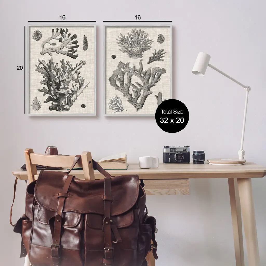 Stupell Vintage Coral Study 2 Piece Framed Giclee Art Set Design By Vision Studio - 16 X 20 - Grey