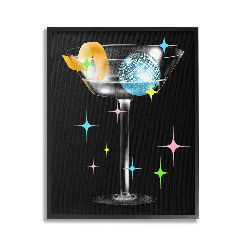 Add dimension to any room with our textured Framed Giclee Artwork. Our framed artwork is securely mounted into a 1.5-inch thick wood grain frame and ready to hang. Frames are available in three alluring styles: black, gray farmhouse and white. In addition, you should check out our oversized options if you want a statement piece. Stupell Wall Art is made in the USA.Features: Dimensions: 11 x 1.5 x 14 FramedFramed Giclee Products are available in the sizes 11"x14", 16"x20" or 24"x30". All Framed Giclee Products have a 1.5" Depth. Wall Art is Ready to Hang with Hardware Free Hanging. No installation required. For Easy Set Up Lean or Layer Artwork on Shelf or Against Wall.Our giclée prints are carefully mounted on a durable MDF backing, and then perfectly finished in a 1.5 inch thick woodgrain frame. Mounted frame colors include black, gray farmhouse and white. Made In USA.Artwork Relates To: Dance, Music, Disco, Pattern, Abstract, Shape, Modern, Glam, Person, Hand, Cocktail, MartiniDesign by Lil' Rue