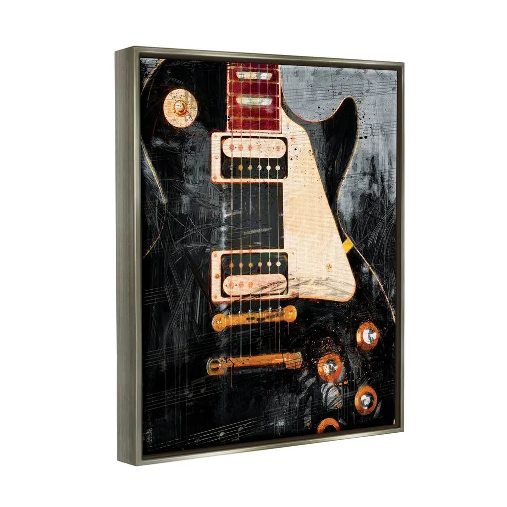 Elevate your home or office to the next level with Stupell Framed Floating Canvas Wall Art. Our premium hand stretched canvas is mounted securly into a sturdy lightweight frame. The museum style gap between wrapped canvas and box frame gives the illusion of floating artwork. Features: Dimensions: 17 x 1.7 x 21 Frame, 16 x 1.5 x 20 Canvas ArtFloating Frame Sizes Include Standard: 17 x 1.7 x 21 Oversized: 25 x 1.7 x 31Wall Art is Ready to Hang - No Installation or Hardware Needed. For Easy Set Up Lean or Layer Artwork on Shelf or Against Wall.Our elevated 1.7" Thick Floating Frame is the perfect complement to our canvas style Wall Art. We use only the highest quality inks in house with industry leading printing solutions. Canvas is hand stretched over a durable wood foundation and then mounted securly into a Modern Box Frame. Made in the USA.Artwork Relates To: Guitar, Musical Instrument, Electric Guitar, Music, Vintage, Sheet Music, Music NotesDesign by Savannah Miller