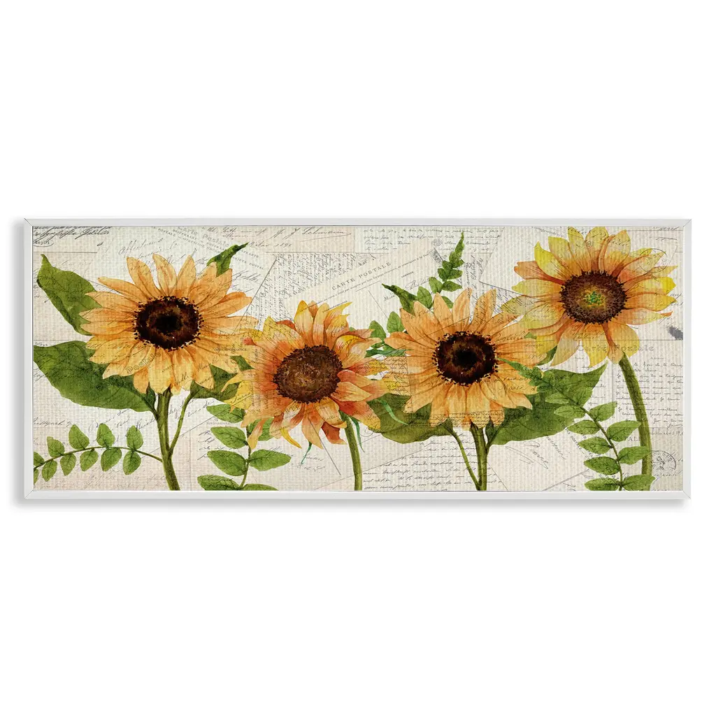 Elevate your home or office to the next level with Stupell Framed Floating Canvas Wall Art. Our premium hand-stretched canvas is mounted securely into a sturdy lightweight frame. The museum-style gap between the wrapped canvas and the box frame gives the illusion of floating artwork. Stupell Wall Art is made in the USA.Features: Dimensions: 25 x 1.7 x 11 Frame, 24 x 1.5 x 10 Canvas ArtFloating Frame Canvas Products are available in sizes 25"x11" and 31"x14". All Floating Frame Canvas Products have a 1.7" Depth.Wall Art is Ready to Hang with Hardware Free Hanging. No Installation required. For Easy Set Up Lean or Layer Artwork on Shelf or Against Wall. Artwork is Permently Fixed into the Frame.Our elevated 1.7" Thick Floating Frame is the perfect complement to our canvas style Wall Art. We use only the highest quality inks in house with industry leading printing solutions. Canvas is hand stretched over a durable wood foundation and then mounted securly into a Modern Box Frame. Made in the USA.Artwork Relates To: Flower, Floral, Sunflower, Vintage, CountryDesign by Kim Allen