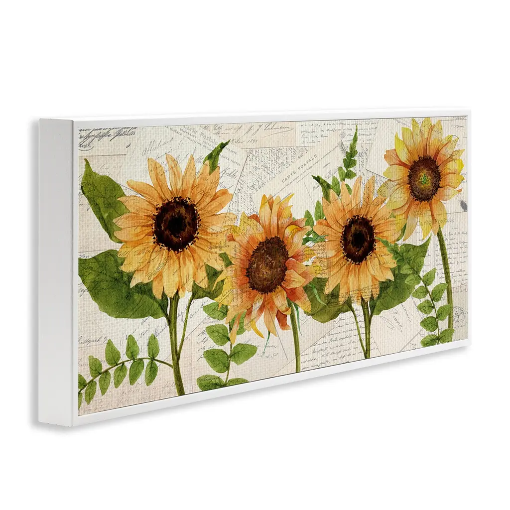 Add dimension to any room with our textured Framed Giclee Artwork. Our framed artwork is securely mounted into a 1.5-inch thick wood grain frame and ready to hang. Frames are available in three alluring styles: black, gray farmhouse and white. In addition, you should check out our oversized options if you want a statement piece. Stupell Wall Art is made in the USA.Features: Dimensions: 24 x 1.5 x 10 FramedFramed Giclee Product Sizes include 24"x10" and 30"x13". All Framed Giclee products have a 1.5" Depth.Wall Art is Ready to Hang with Hardware Free Hanging. No installation required. For Easy Set Up Lean or Layer Artwork on Shelf or Against Wall.Our giclée prints are carefully mounted on a durable MDF backing, and then perfectly finished in a 1.5 inch thick woodgrain frame. Mounted frame colors include black, gray farmhouse and white. Made In USA.Artwork Relates To: Flower, Floral, Sunflower, Vintage, CountryDesign by Kim Allen