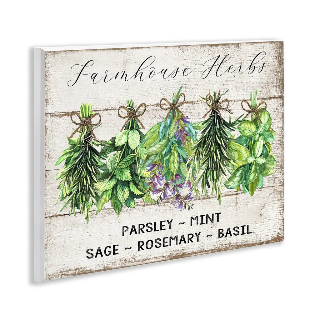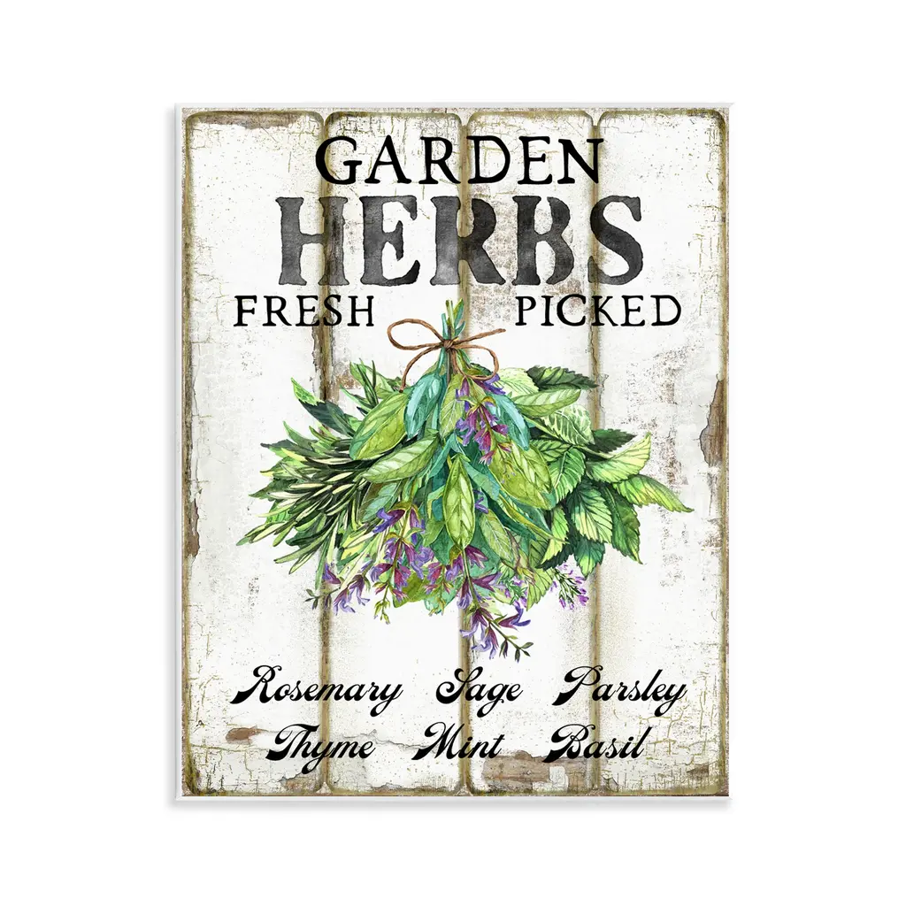 Our wall plaques start as high-quality lithograph prints mounted on durable 0.5-inch thick MDF wood. Each piece is hand finished and comes with a fresh layer of white foil on the sides to give it a crisp, clean look. Plaques arrive ready to hang without installation and come with removable plastic corners to keep them from damage in transit. Stupell Wall Art is made in the USA.Features: Dimensions: 14 x 0.5 x 11 InchesWall Art is Ready to Hang with Hardware Free Hanging. No installation required. For Easy Set Up Lean or Layer Artwork on Shelf or Against Wall.All of our wall plaques start off as high quality lithograph prints that are then mounted on durable 0.5 inch thick MDF wood. Each piece is hand finished and comes with a fresh layer of foil on the sides to give it a crisp clean look. Made In USA.Artwork Relates To: Country, Rustic, Sign, Farmer, Farmhouse, Kitchen, HerbsDesign by Creatif Belle