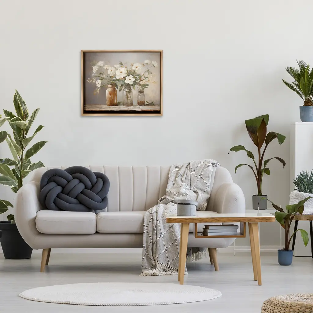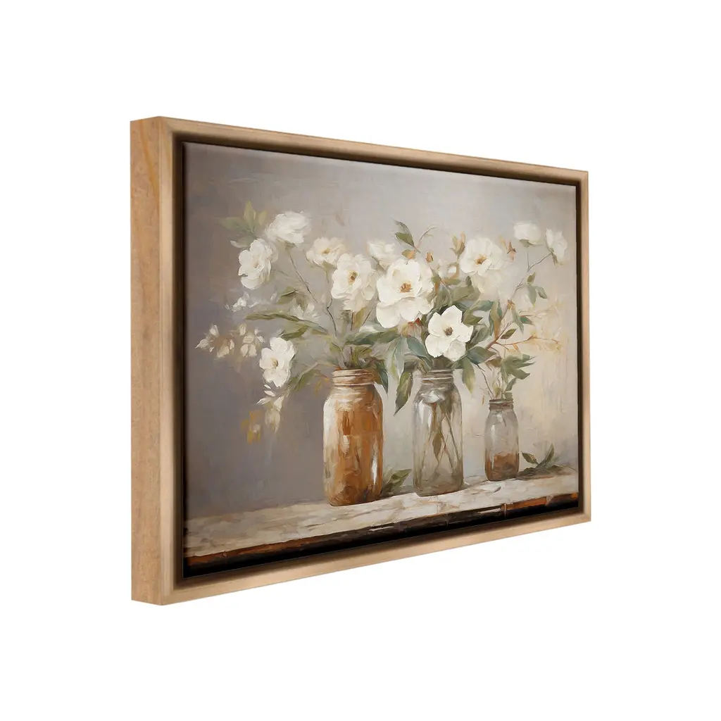Elevate your home or office to the next level with Stupell Framed Floating Canvas Wall Art. Our premium hand-stretched canvas is mounted securely into a sturdy lightweight frame. The museum-style gap between the wrapped canvas and the box frame gives the illusion of floating artwork. Stupell Wall Art is made in the USA.Features: Dimensions: 21 x 1.7 x 17 Frame, 20 x 1.5 x 16 Canvas ArtFloating Frame Canvas Products are available in sizes 21"x17" and 31"x25". All Floating Frame Canvas Products have a 1.7" Depth.Wall Art is Ready to Hang with Hardware Free Hanging. No Installation required. For Easy Set Up Lean or Layer Artwork on Shelf or Against Wall. Artwork is Permently Fixed into the Frame.Our elevated 1.7" Thick Floating Frame is the perfect complement to our canvas style Wall Art. We use only the highest quality inks in house with industry leading printing solutions. Canvas is hand stretched over a durable wood foundation and then mounted securly into a Modern Box Frame. Made in the USA.Artwork Relates To: Jar, Plant, Flower, Bouquet, Floral, Still Life, Traditional, Country, Farmhouse, VintageDesign by Ramona Murdock