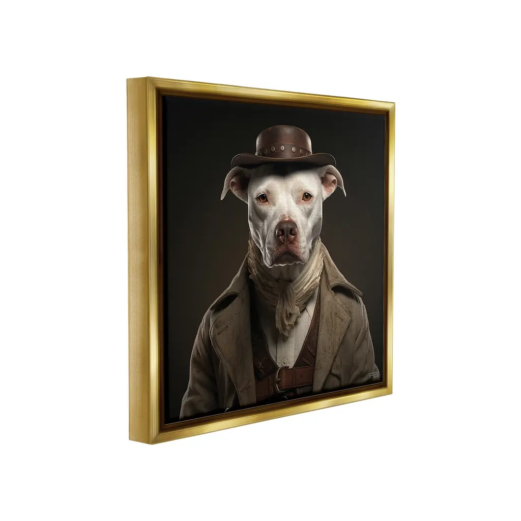 Elevate your home or office to the next level with Stupell Framed Floating Canvas Wall Art. Our premium hand-stretched canvas is mounted securely into a sturdy lightweight frame. The museum-style gap between the wrapped canvas and the box frame gives the illusion of floating artwork. Stupell Wall Art is made in the USA.Features: Dimensions: 18 x 1.7 x 18 Frame, 17 x 1.5 x 17 Canvas ArtFloating Frame Canvas Products are available in sizes 18"x18" and 25"x25". All Floating Frame Canvas Products have a 1.7" Depth.Wall Art is Ready to Hang with Hardware Free Hanging. No Installation required. For Easy Set Up Lean or Layer Artwork on Shelf or Against Wall. Artwork is Permently Fixed into the Frame.Our elevated 1.7" Thick Floating Frame is the perfect complement to our canvas style Wall Art. We use only the highest quality inks in house with industry leading printing solutions. Canvas is hand stretched over a durable wood foundation and then mounted securly into a Modern Box Frame. Made in the USA.Artwork Relates To: Animal, Mammal, Fashion, Southwestern, Cowboy, Pet, Dog, VintageDesign by RB
