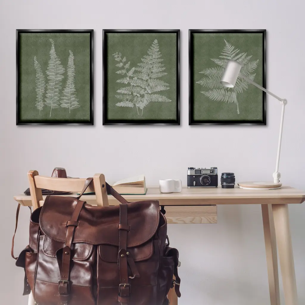 Stupell Vintage Fern Silhouettes Framed Floater Canvas Wall Art Design By Annie Lapoint (Set Of 3) - 25 X 31 - Black