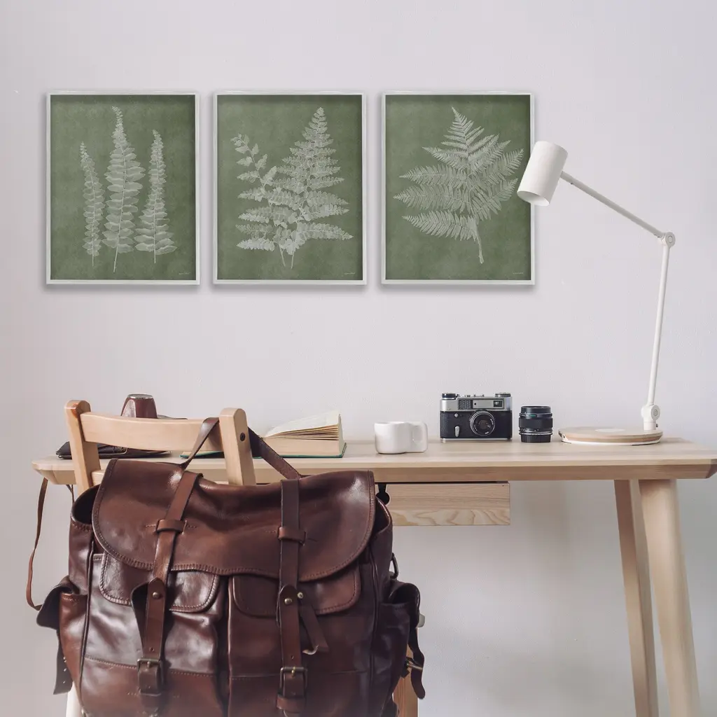 Stupell Vintage Fern Silhouettes Framed Giclee Art Design By Annie Lapoint (Set Of 3) - 16 X 20 - Grey