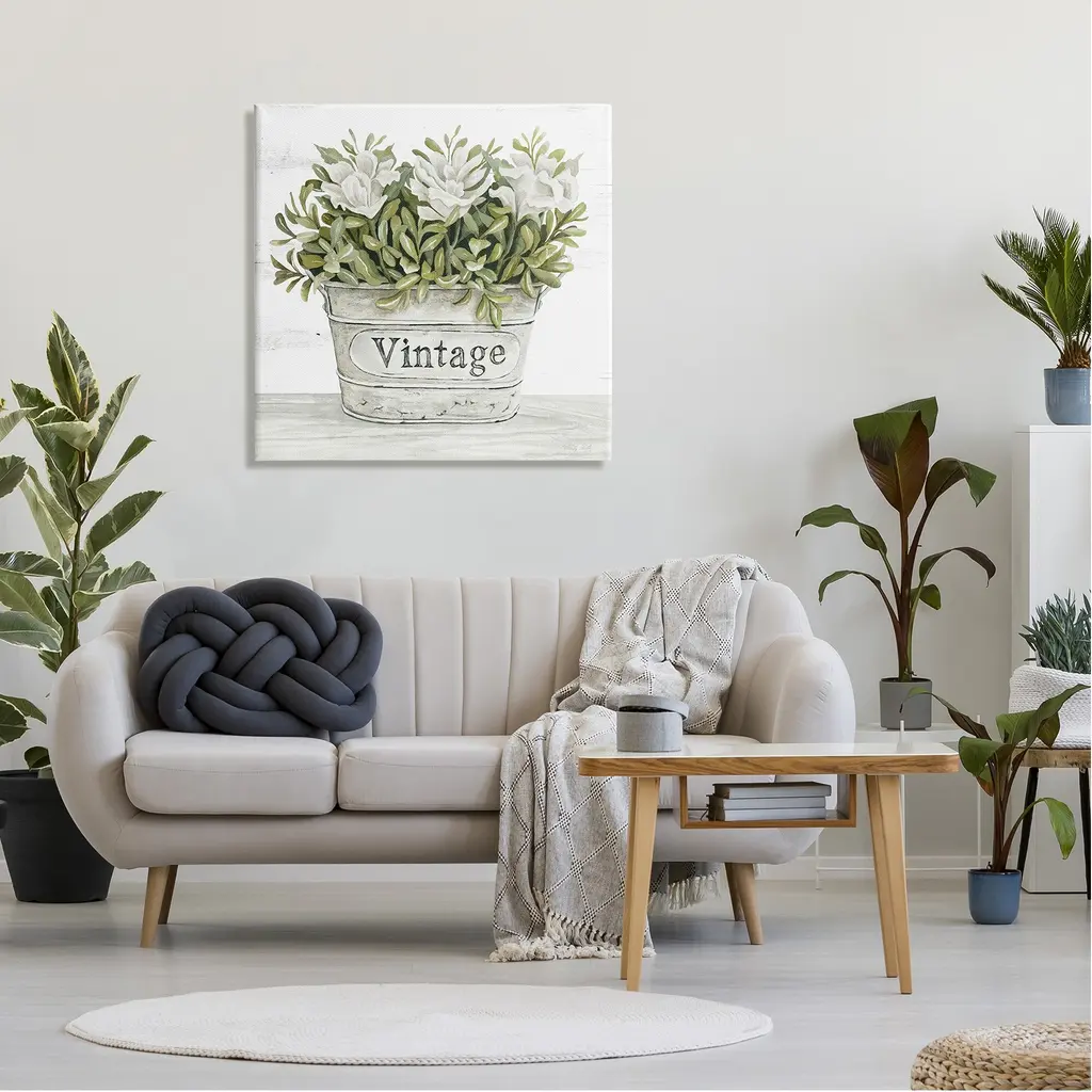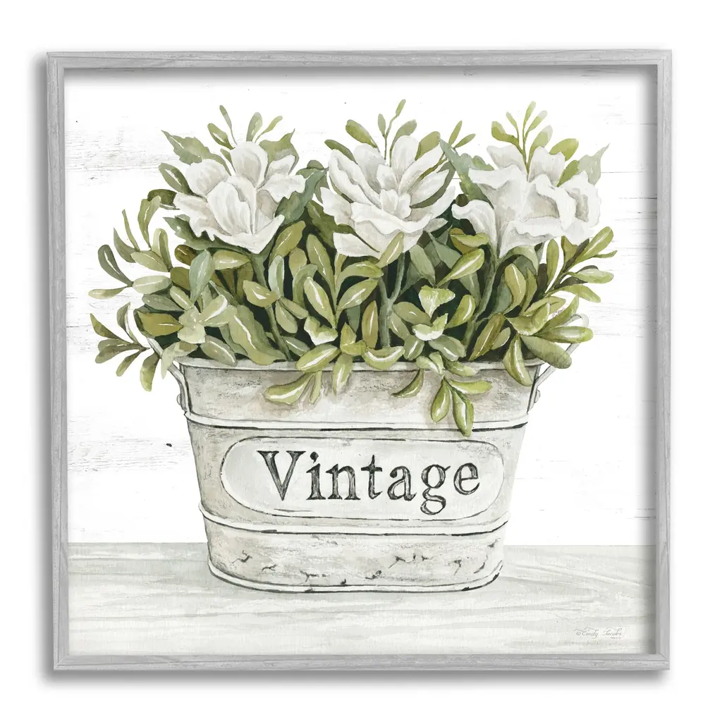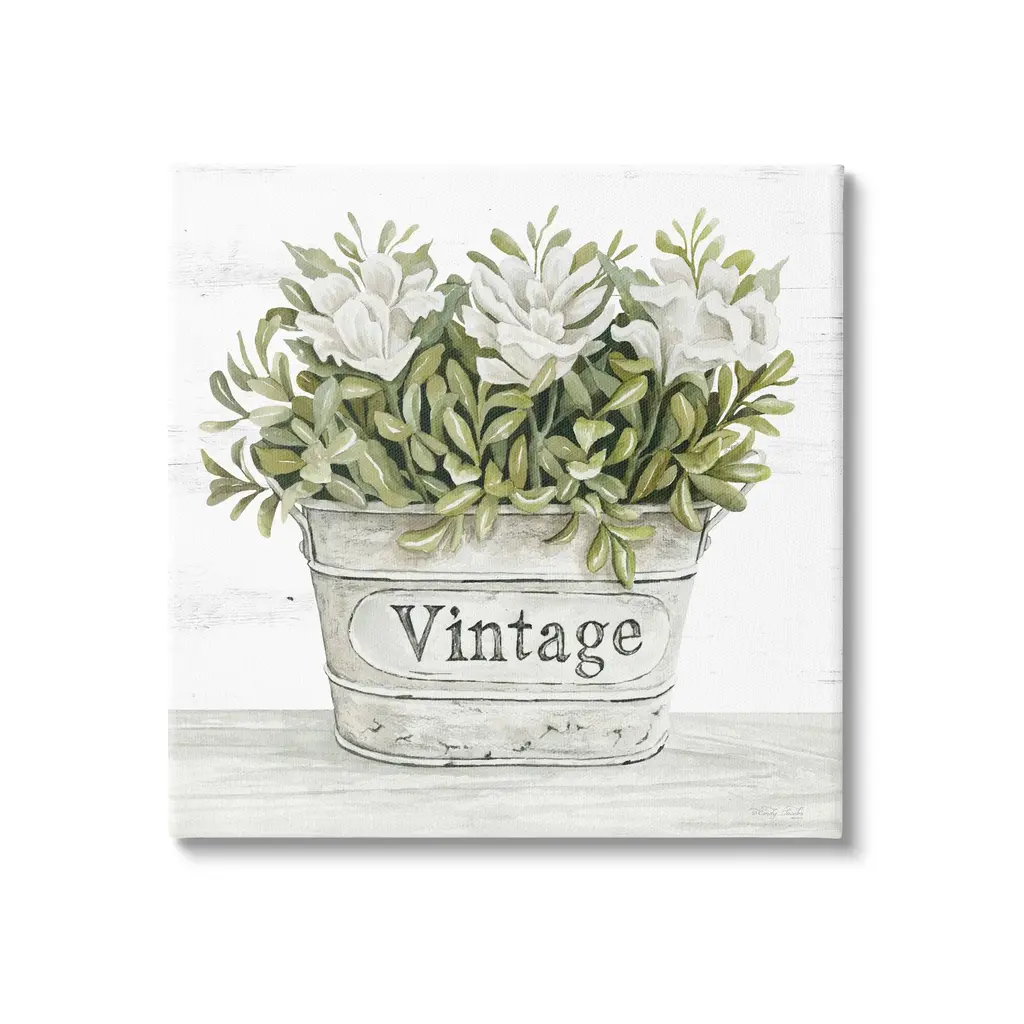 Stupell Vintage Flower Planter Rustic Blooms Full Leaves Canvas Wall Art, Design By Cindy Jacobs - 30 X 30