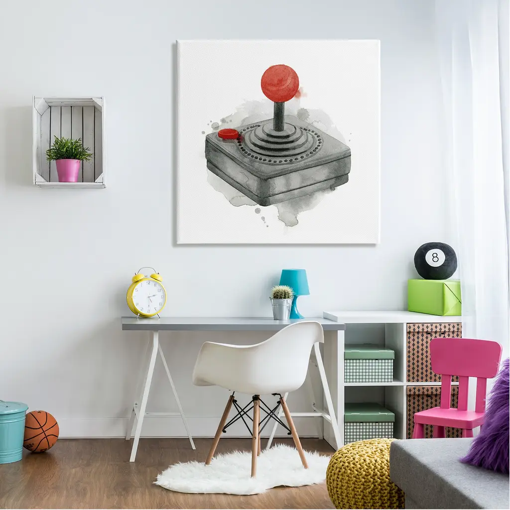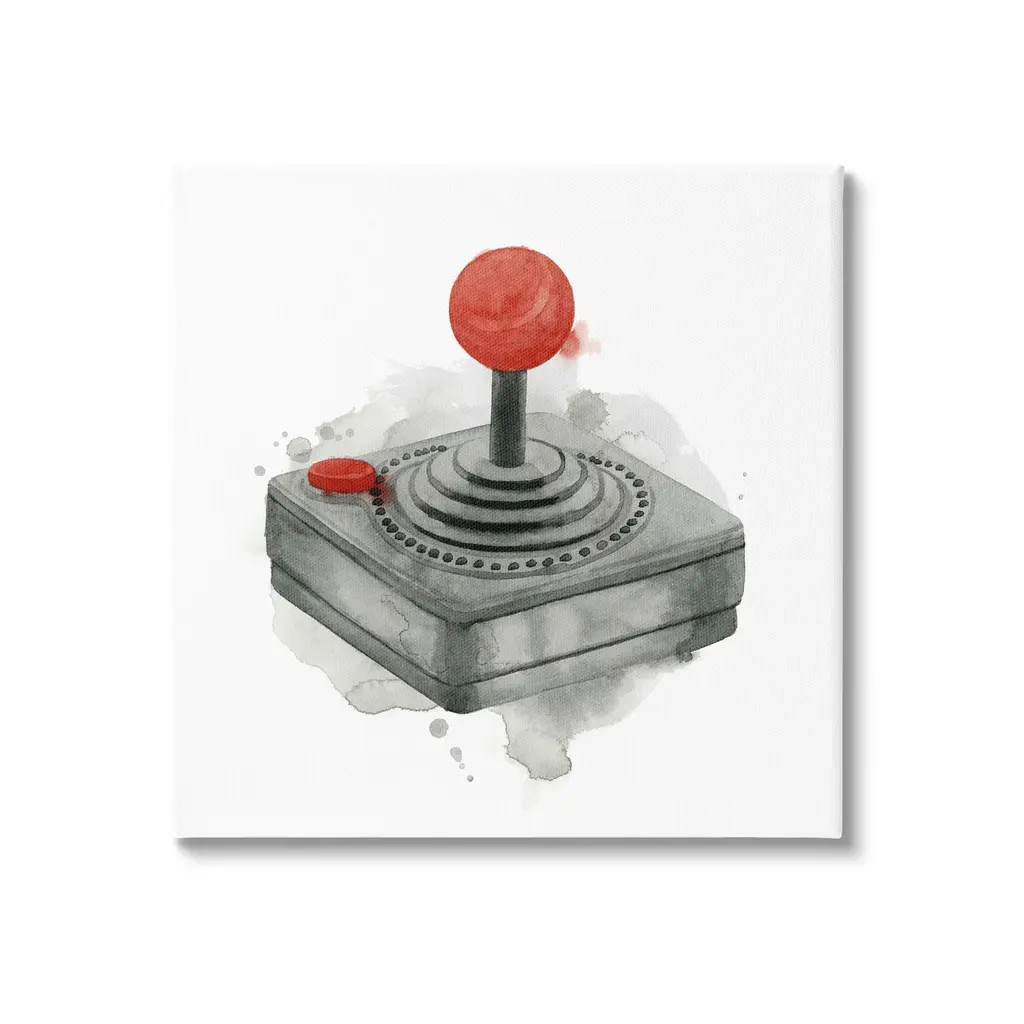 We create our stretched canvas to the highest standards. Using only the highest quality inks and canvas on Mimaki printers, we hand-cut and stretch each piece over a 1.5-inch thick wooden frame for hanging. As a result, the art comes ready to hang on the sturdy ledge with no installation required. Stupell Wall Art is made in the USA.Features: Dimensions: 17 x 1.5 x 17 InchesStretched Canvas Sizes Include Standard: 17 x 1.5 x 17 Large: 24 x 1.5 x 24 X-Large: 30 x 1.5 x 30 Oversized: 36 x 1.5 x 36Wall Art is Ready to Hang - No Installation or Hardware Needed. For Easy Set Up Lean or Layer Artwork on Shelf or Against Wall.Our stretched canvas is created with the highest standards. We use only the highest quality inks and canvas on our in house Mimaki printers, and then hand cut and stretch each piece over a 1.5 inch thick wooden frame for hanging. Made In USA.Artwork Relates To: Electronics, Joystick, Gaming, Video Game, Entertainment, AtariDesign by Grace Popp