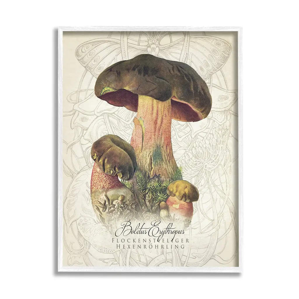 Stupell Vintage German Nature Mushroom Framed Giclee Art By Steve Hunziker - 11 X 14 - White
