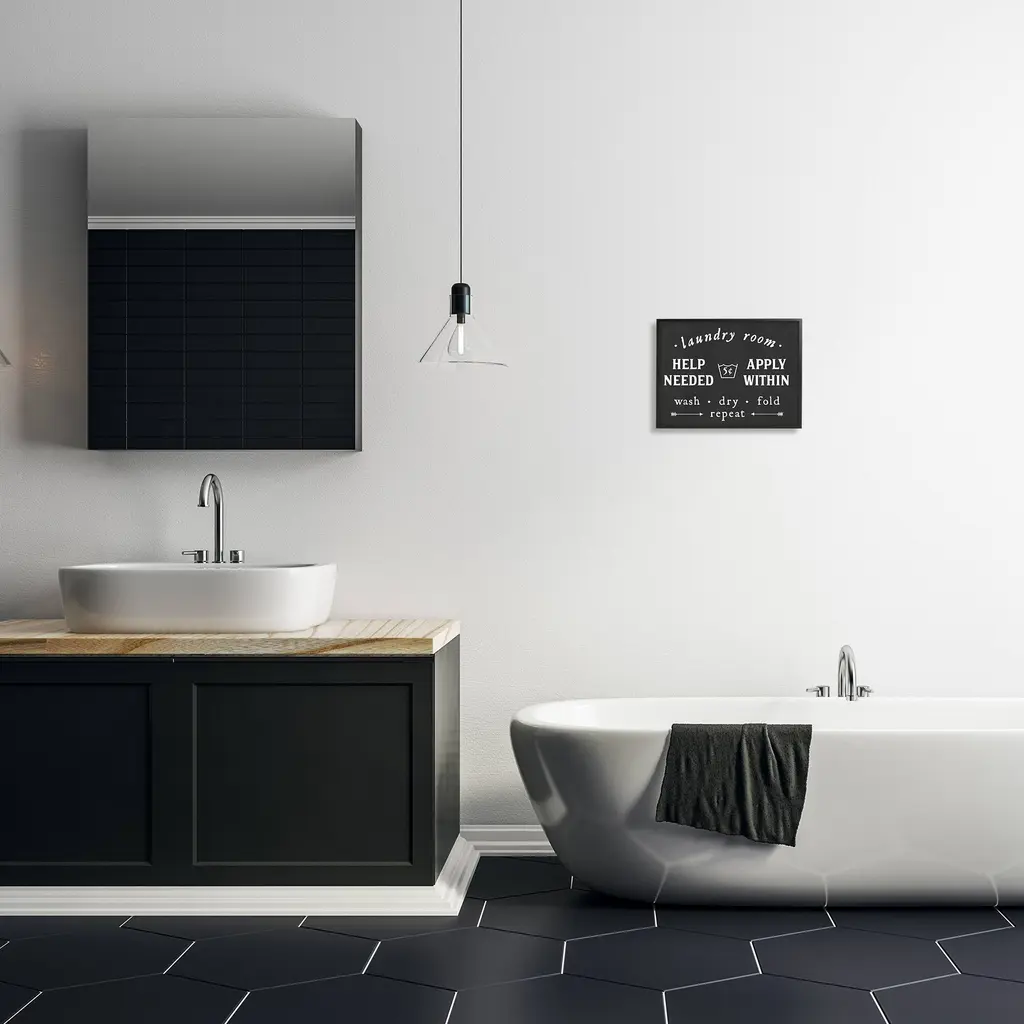 Stupell Vintage Help Wanted Laundry Room Sign Black White Framed Wall Art - 11 X 14 - Black