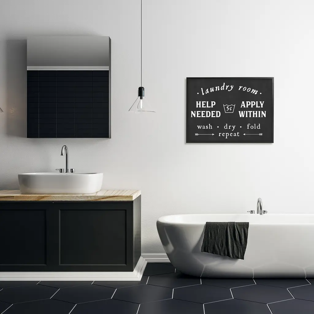 Stupell Vintage Help Wanted Laundry Room Sign Black White Framed Wall Art - 24 X 30 - Black