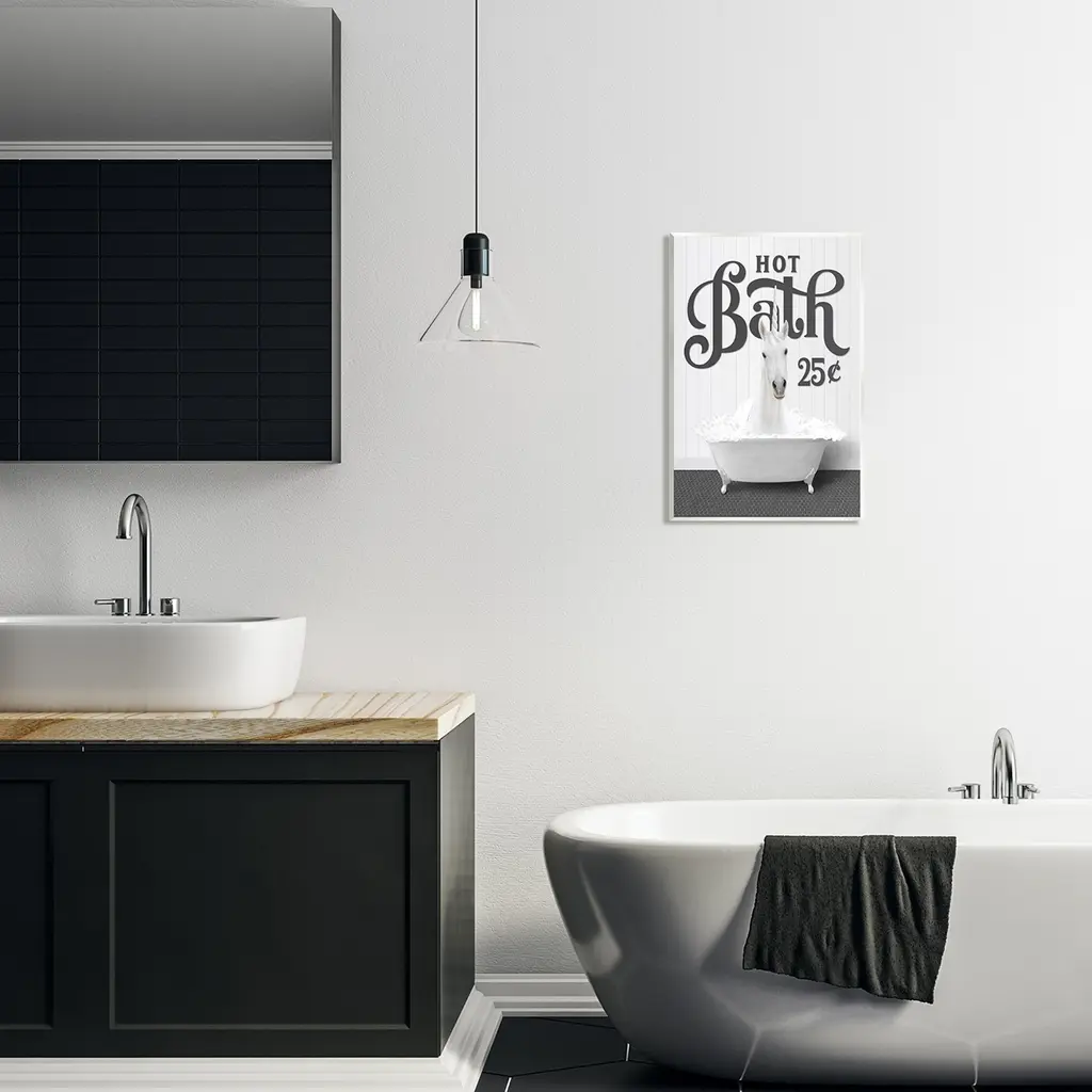 Our wall plaques start as high-quality lithograph prints mounted on durable 0.5-inch thick MDF wood. Each piece is hand finished and comes with a fresh layer of white foil on the sides to give it a crisp, clean look. Plaques arrive ready to hang without installation and come with removable plastic corners to keep them from damage in transit. Stupell Wall Art is made in the USA.Features: Dimensions: 10 x 0.5 x 15 InchesWall Plaque Sizes Include Standard: 10 x 0.5 x 15 Oversized: 13 x 0.5 x 19Wall Art is Ready to Hang with Hardware Free Hanging. No installation required. For Easy Set Up Lean or Layer Artwork on Shelf or Against Wall.All of our wall plaques start off as high quality lithograph prints that are then mounted on durable 0.5 inch thick MDF wood. Each piece is hand finished and comes with a fresh layer of foil on the sides to give it a crisp clean look. Made In USA.Artwork Relates To: Animal, Bathing, Bathroom, Hot Bath, Phrase, UnicornDesign by Lettered and Lined