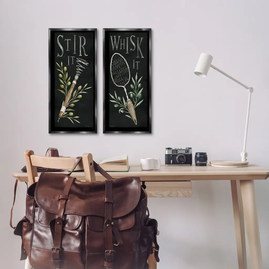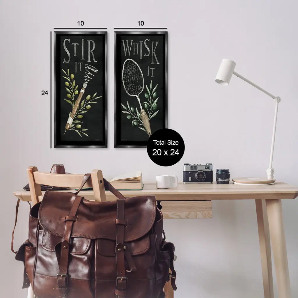 Elevate your home or office to the next level with Stupell Framed Floating Canvas Wall Art. Our premium hand-stretched canvas is mounted securely into a sturdy lightweight frame. The museum-style gap between the wrapped canvas and the box frame gives the illusion of floating artwork. Stupell Wall Art is made in the USA.Features: Dimensions: 2 Piece Set, Each Frame is 11 x 1.7 x 25Two Piece Floating Frame Canvas Products are available as 11"x25" or 14"x31" Panels. All Floating Frame Canvas Products have a 1.7" Depth.Wall Art is Ready to Hang with Hardware Free Hanging. No Installation required. For Easy Set Up Lean or Layer Artwork on Shelf or Against Wall. Artwork is Permently Fixed into the Frame.Our elevated 1.7" Thick Floating Frame is the perfect complement to our canvas style Wall Art. We use only the highest quality inks in house with industry leading printing solutions. Canvas is hand stretched over a durable wood foundation and then mounted securly into a Modern Box Frame. Made in the USA.Artwork Relates To: Kitchen, Herb, Vintage, Sign, Plant, Botanical, Leaf, Stir It, Whisk ItDesign by Cindy Jacobs