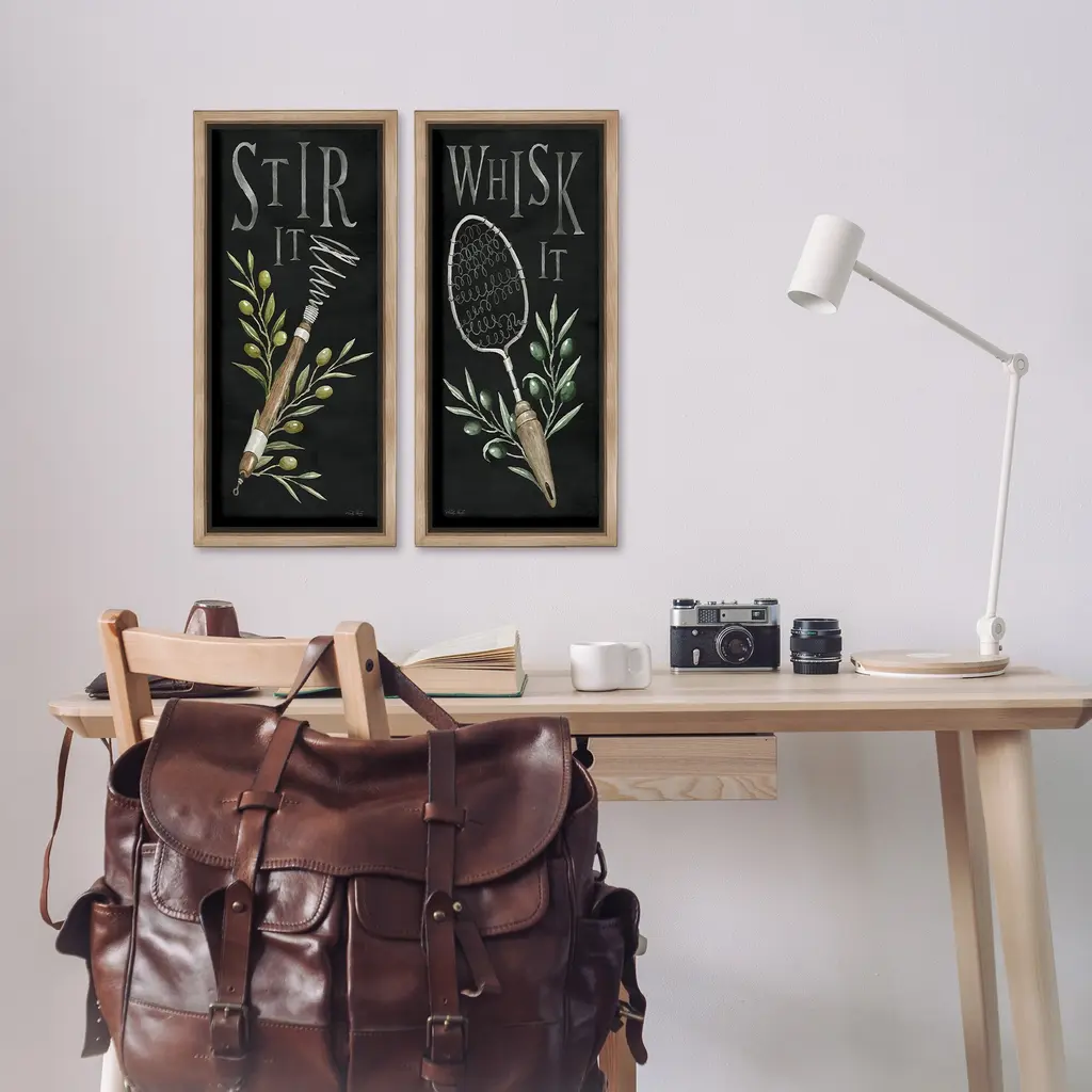 Elevate your home or office to the next level with Stupell Framed Floating Canvas Wall Art. Our premium hand-stretched canvas is mounted securely into a sturdy lightweight frame. The museum-style gap between the wrapped canvas and the box frame gives the illusion of floating artwork. Stupell Wall Art is made in the USA.Features: Dimensions: 2 Piece Set, Each Frame is 11 x 1.7 x 25Two Piece Floating Frame Canvas Products are available as 11"x25" or 14"x31" Panels. All Floating Frame Canvas Products have a 1.7" Depth.Wall Art is Ready to Hang with Hardware Free Hanging. No Installation required. For Easy Set Up Lean or Layer Artwork on Shelf or Against Wall. Artwork is Permently Fixed into the Frame.Our elevated 1.7" Thick Floating Frame is the perfect complement to our canvas style Wall Art. We use only the highest quality inks in house with industry leading printing solutions. Canvas is hand stretched over a durable wood foundation and then mounted securly into a Modern Box Frame. Made in the USA.Artwork Relates To: Kitchen, Herb, Vintage, Sign, Plant, Botanical, Leaf, Stir It, Whisk ItDesign by Cindy Jacobs