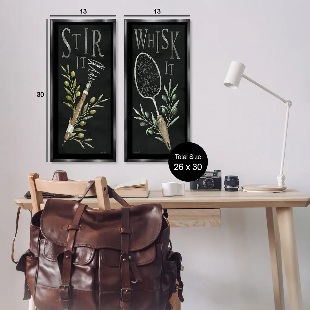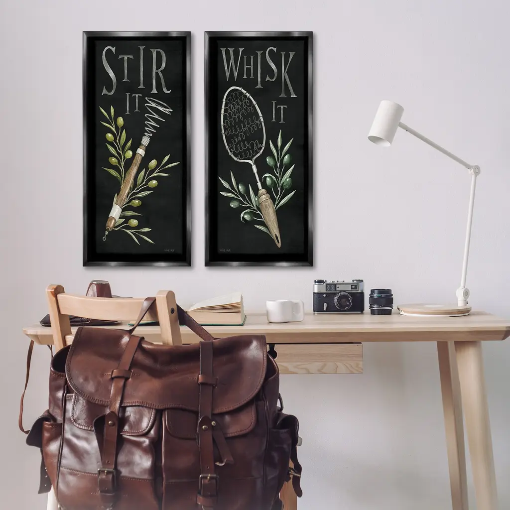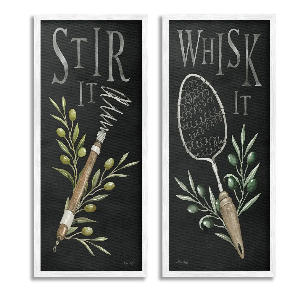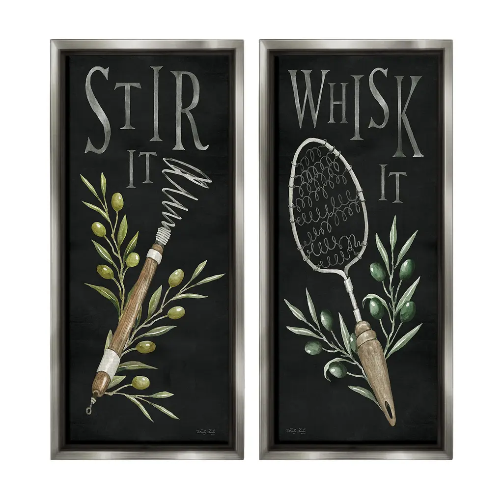 Elevate your home or office to the next level with Stupell Framed Floating Canvas Wall Art. Our premium hand-stretched canvas is mounted securely into a sturdy lightweight frame. The museum-style gap between the wrapped canvas and the box frame gives the illusion of floating artwork. Stupell Wall Art is made in the USA.Features: Dimensions: 2 Piece Set, Each Frame is 11 x 1.7 x 25Two Piece Floating Frame Canvas Products are available as 11"x25" or 14"x31" Panels. All Floating Frame Canvas Products have a 1.7" Depth.Wall Art is Ready to Hang with Hardware Free Hanging. No Installation required. For Easy Set Up Lean or Layer Artwork on Shelf or Against Wall. Artwork is Permently Fixed into the Frame.Our elevated 1.7" Thick Floating Frame is the perfect complement to our canvas style Wall Art. We use only the highest quality inks in house with industry leading printing solutions. Canvas is hand stretched over a durable wood foundation and then mounted securly into a Modern Box Frame. Made in the USA.Artwork Relates To: Kitchen, Herb, Vintage, Sign, Plant, Botanical, Leaf, Stir It, Whisk ItDesign by Cindy Jacobs