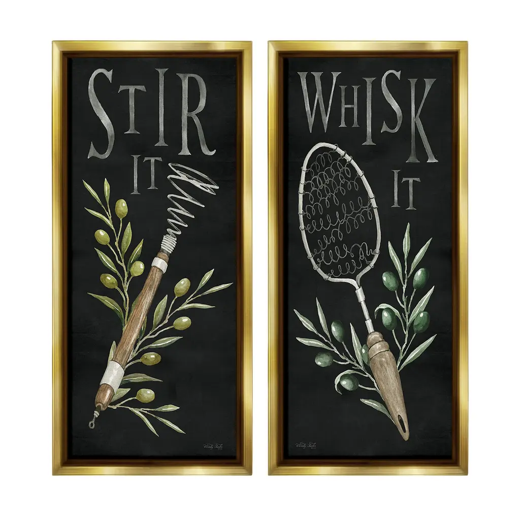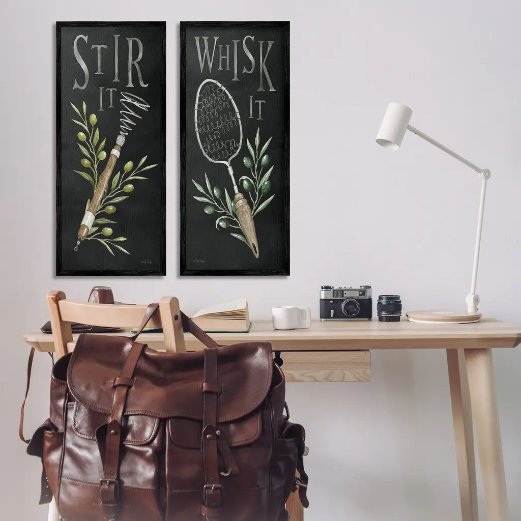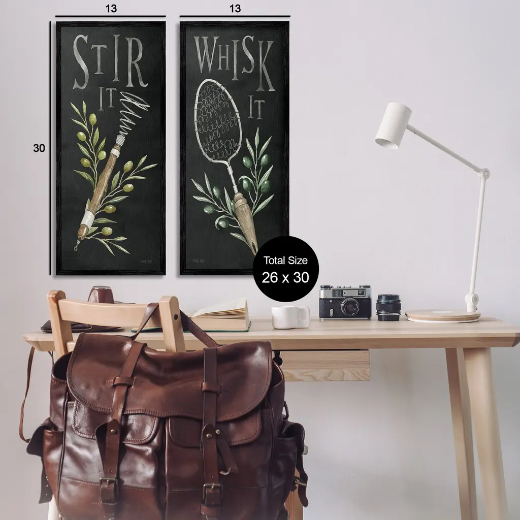 Fill any space in your home or office with our Framed Wall Art Sets. Our framed artwork is securely mounted into a 1.5-inch thick wood grain frame and ready to hang. Frames are available in three alluring styles: black, gray farmhouse and white. Stupell Wall Art is made in the USA.Features: Dimensions: 2 Piece Set, Each Panel is 10 x 1.5 x 24 FramedTwo Piece Framed Giclee Sets are available as 10"x24" or 13"x30" Panels. All Framed Giclee Panels have a 1.5" Depth. Wall Art is Ready to Hang with Hardware Free Hanging. No installation required. For Easy Set Up Lean or Layer Artwork on Shelf or Against Wall.Curated Wall Art Sets make it easy for you complete the theme for any room. Our giclée prints are carefully mounted on a durable MDF backing, and then perfectly finished in a 1.5 inch thick woodgrain frame. Mounted frame colors include black, gray farmhouse and white. Made In USA.Artwork Relates To: Kitchen, Herb, Vintage, Sign, Plant, Botanical, Leaf, Stir It, Whisk ItDesign by Cindy Jacobs