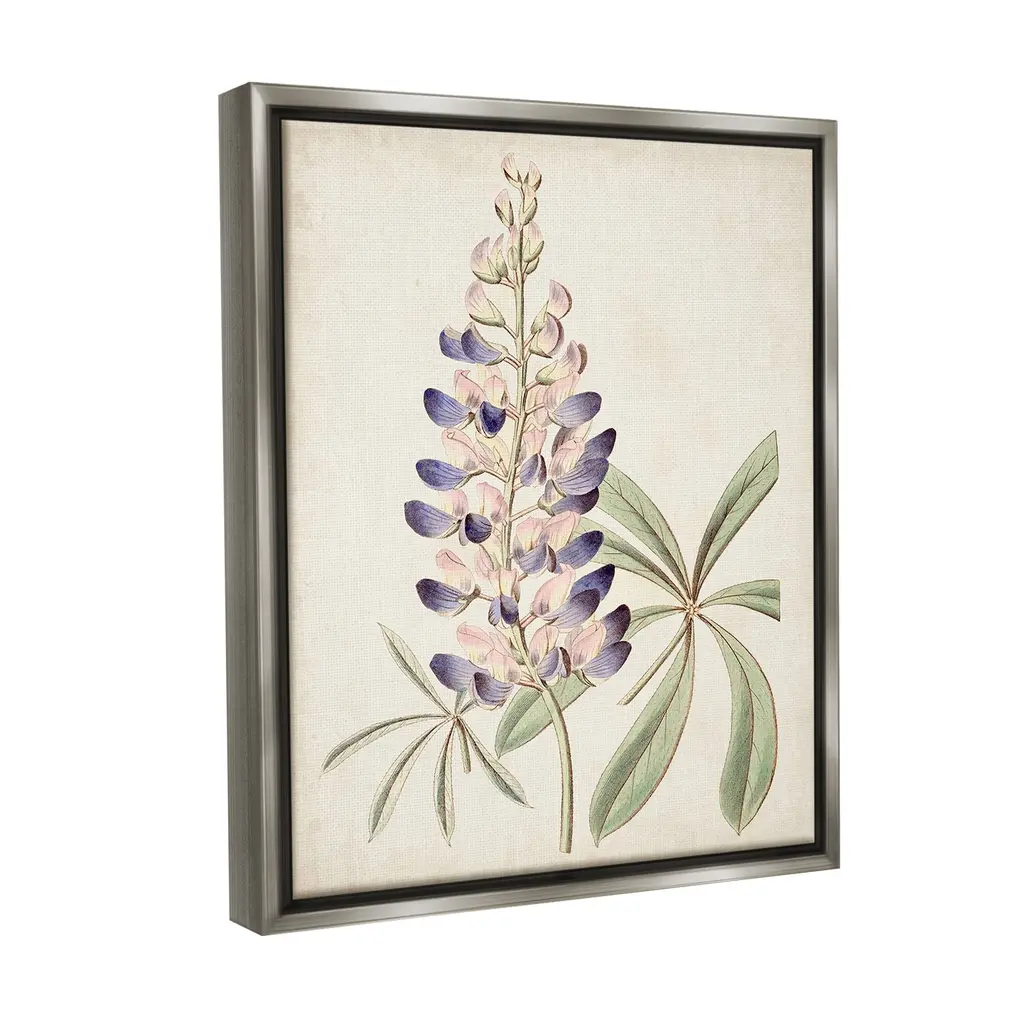 Stupell Vintage Lupin Plant Framed Floater Canvas Wall Art Design By Ridgeway - 17 X 21 - Grey