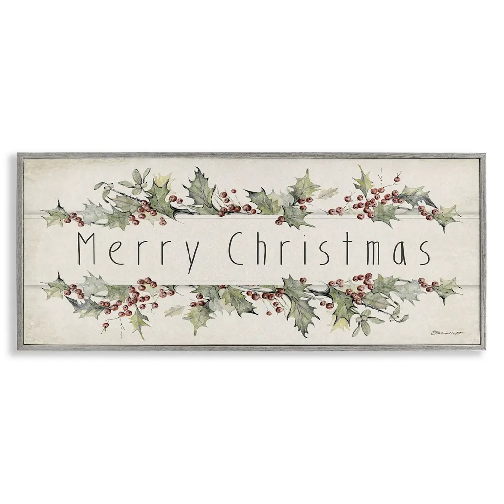 Elevate your home or office to the next level with Stupell Framed Floating Canvas Wall Art. Our premium hand-stretched canvas is mounted securely into a sturdy lightweight frame. The museum-style gap between the wrapped canvas and the box frame gives the illusion of floating artwork. Stupell Wall Art is made in the USA.Features: Dimensions: 25 x 1.7 x 11 Frame, 24 x 1.5 x 10 Canvas ArtFloating Frame Canvas Products are available in sizes 25"x11" and 31"x14". All Floating Frame Canvas Products have a 1.7" Depth.Wall Art is Ready to Hang with Hardware Free Hanging. No Installation required. For Easy Set Up Lean or Layer Artwork on Shelf or Against Wall. Artwork is Permently Fixed into the Frame.Our elevated 1.7" Thick Floating Frame is the perfect complement to our canvas style Wall Art. We use only the highest quality inks in house with industry leading printing solutions. Canvas is hand stretched over a durable wood foundation and then mounted securly into a Modern Box Frame. Made in the USA.Artwork Relates To: Holiday, Christmas, Botanical, Rustic, Phrase, Vintage, TraditionalDesign by Stephanie Workman Marrott