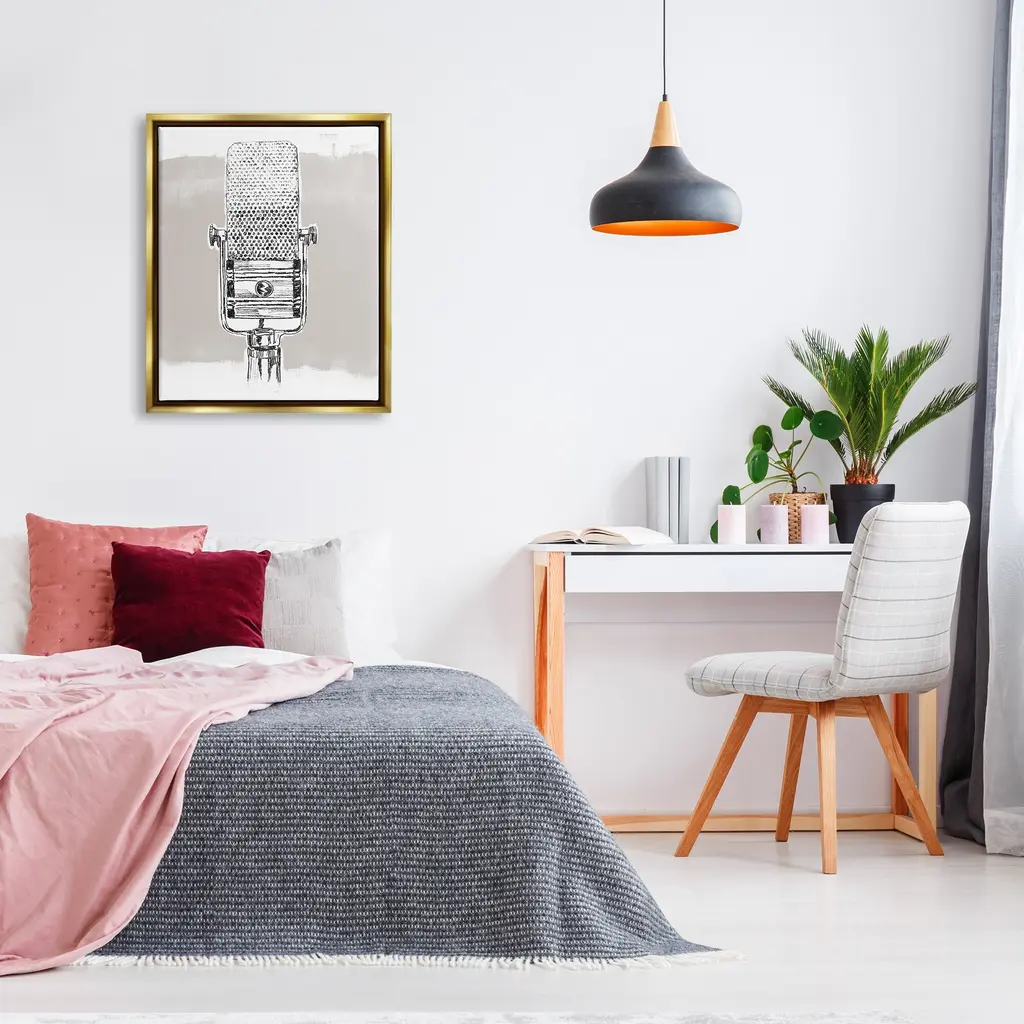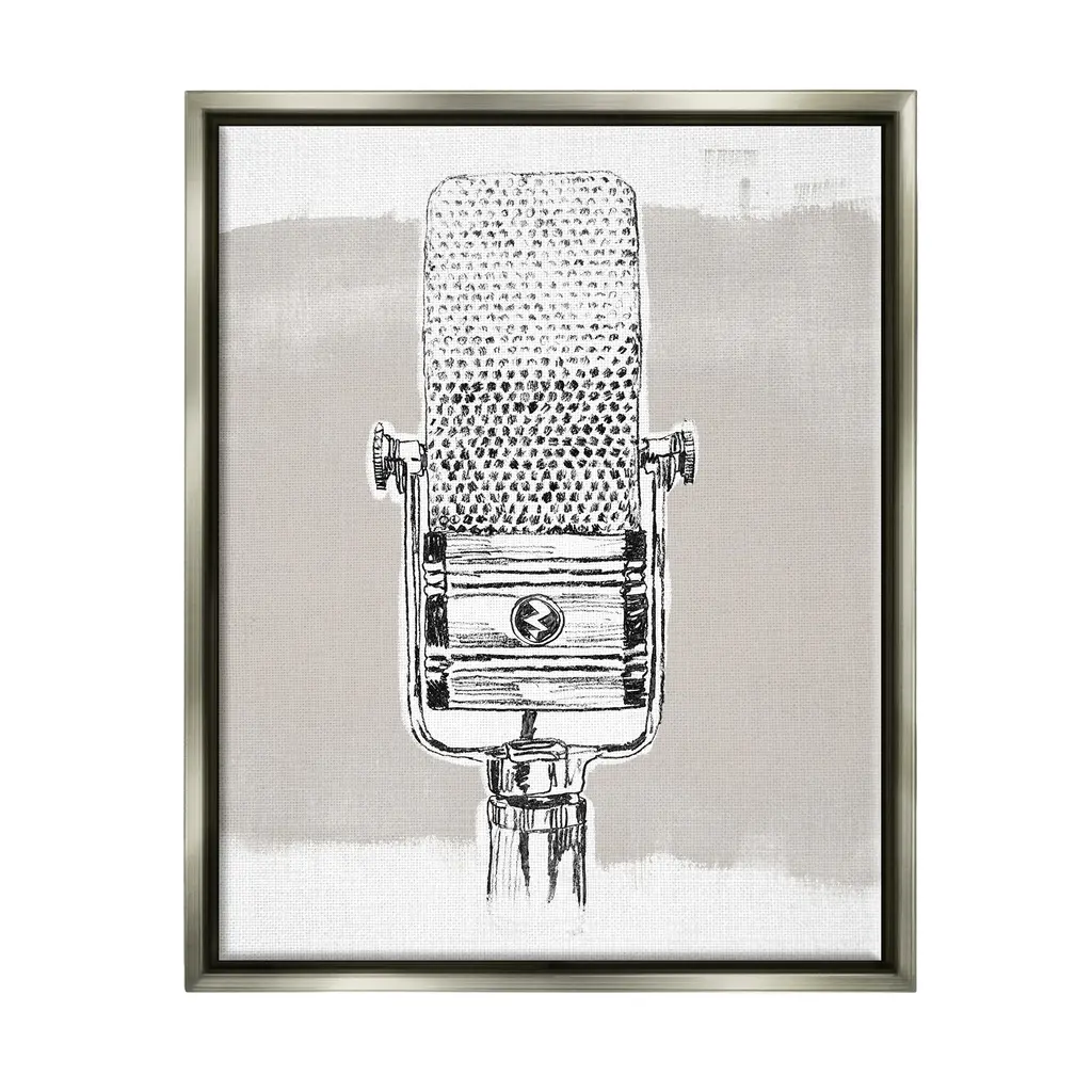 Elevate your home or office to the next level with Stupell Framed Floating Canvas Wall Art. Our premium hand-stretched canvas is mounted securely into a sturdy lightweight frame. The museum-style gap between the wrapped canvas and the box frame gives the illusion of floating artwork. Stupell Wall Art is made in the USA.Features: Dimensions: 17 x 1.7 x 21 Frame, 16 x 1.5 x 20 Canvas ArtFloating Frame Sizes Include Standard: 17 x 1.7 x 21 Oversized: 25 x 1.7 x 31Wall Art is Ready to Hang - No Installation or Hardware Needed. For Easy Set Up Lean or Layer Artwork on Shelf or Against Wall.Our elevated 1.7" Thick Floating Frame is the perfect complement to our canvas style Wall Art. We use only the highest quality inks in house with industry leading printing solutions. Canvas is hand stretched over a durable wood foundation and then mounted securly into a Modern Box Frame. Made in the USA.Artwork Relates To: Microphone, Mic, Music, Song, VintageDesign by June Erica Vess