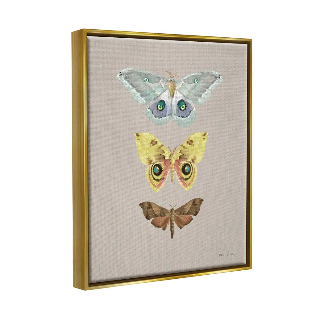 Stupell Vintage Moth Species Framed Floater Canvas Wall Art Design By Danhui Nai - 17 X 21 - Gold
