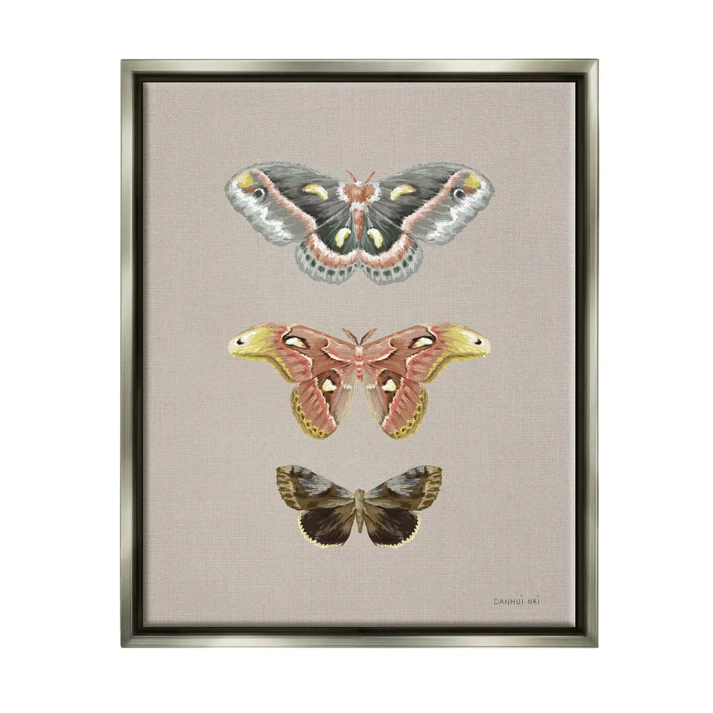Elevate your home or office to the next level with Stupell Framed Floating Canvas Wall Art. Our premium hand-stretched canvas is mounted securely into a sturdy lightweight frame. The museum-style gap between the wrapped canvas and the box frame gives the illusion of floating artwork. Stupell Wall Art is made in the USA.Features: Dimensions: 17 x 1.7 x 21 Frame, 16 x 1.5 x 20 Canvas ArtFloating Frame Sizes Include Standard: 17 x 1.7 x 21 Oversized: 25 x 1.7 x 31Wall Art is Ready to Hang with Hardware Free Hanging. No installation required. For Easy Set Up Lean or Layer Artwork on Shelf or Against Wall.Our elevated 1.7" Thick Floating Frame is the perfect complement to our canvas style Wall Art. We use only the highest quality inks in house with industry leading printing solutions. Canvas is hand stretched over a durable wood foundation and then mounted securly into a Modern Box Frame. Made in the USA.Artwork Relates To: Animal, Insect, Invertebrate, Butterfly, MothDesign by Danhui Nai