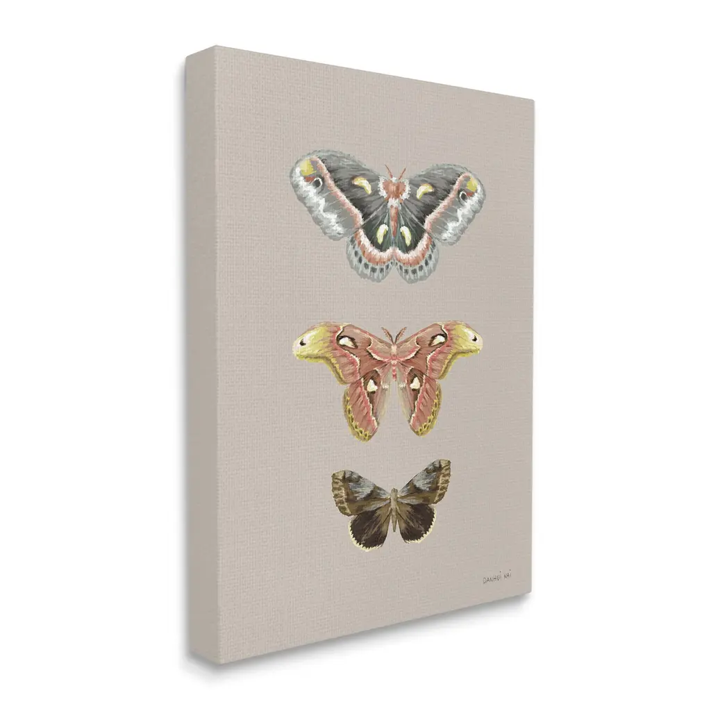 We create our stretched canvas to the highest standards. Using only the highest quality inks and canvas on Mimaki printers, we hand-cut and stretch each piece over a 1.5-inch thick wooden frame for hanging. As a result, the art comes ready to hang on the sturdy ledge with no installation required. Stupell Wall Art is made in the USA.Features: Dimensions: 16 x 1.5 x 20 InchesStretched Canvas Sizes Include Standard: 16 x 1.5 x 20 Large: 20 x 1.5 x 30 X-Large: 30 x 1.5 x 40 Oversized: 36 x 1.5 x 48Wall Art is Ready to Hang with Hardware Free Hanging. No installation required. For Easy Set Up Lean or Layer Artwork on Shelf or Against Wall.Our stretched canvas is created with the highest standards. We use only the highest quality inks and canvas on our in house Mimaki printers, and then hand cut and stretch each piece over a 1.5 inch thick wooden frame for hanging. Made In USA.Artwork Relates To: Animal, Insect, Invertebrate, Butterfly, MothDesign by Danhui Nai