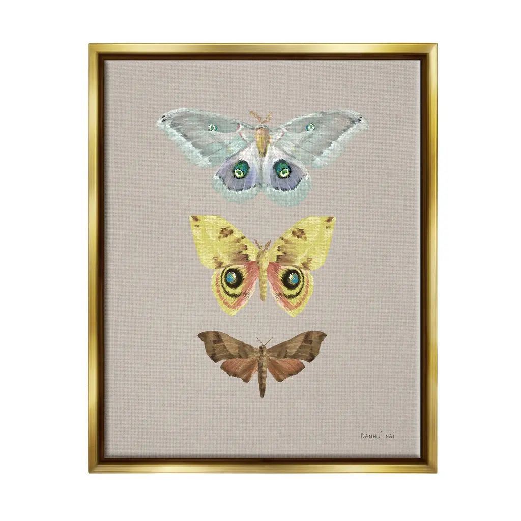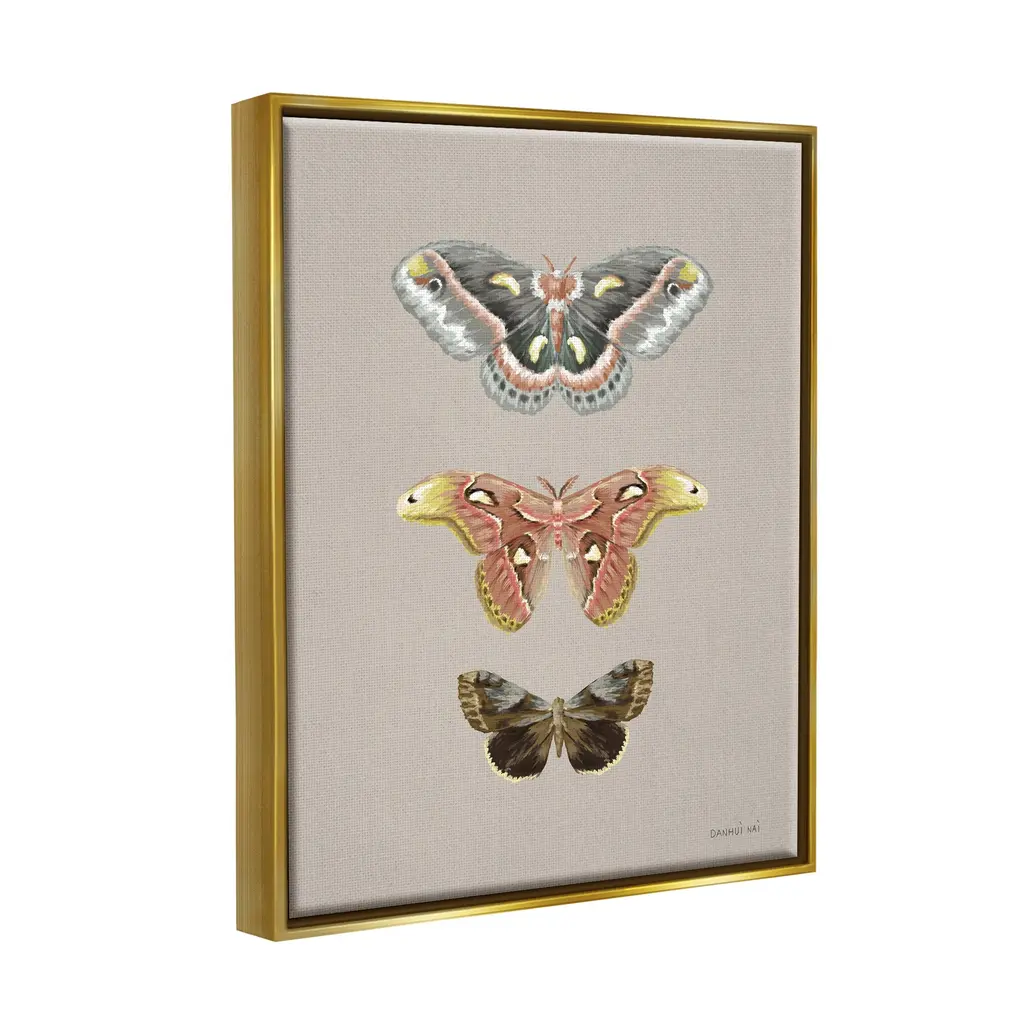 Stupell Vintage Moth Specimens Framed Floater Canvas Wall Art Design By Danhui Nai - 25 X 31 - Gold