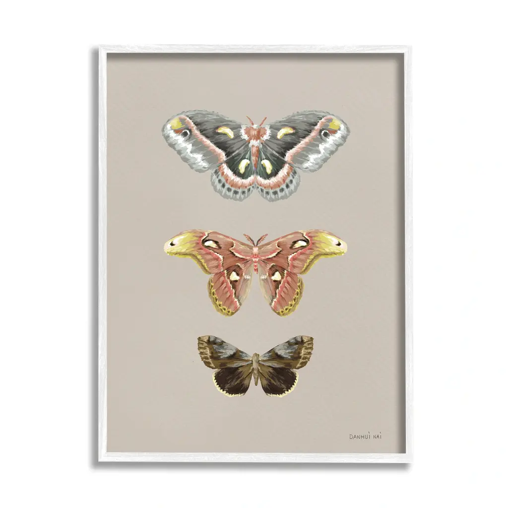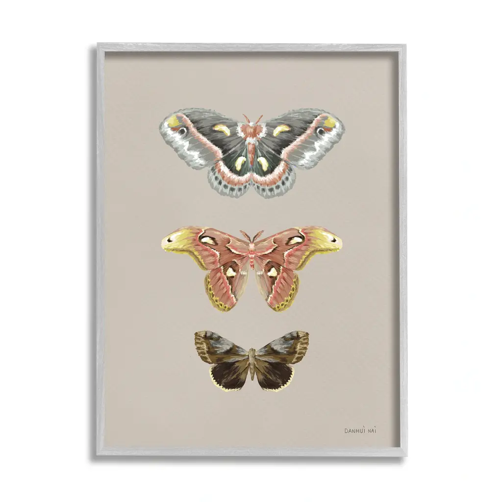 Add dimension to any room with our textured Framed Giclee Artwork. Our framed artwork is securely mounted into a 1.5-inch thick wood grain frame and ready to hang. Frames are available in three alluring styles: black, gray farmhouse and white. In addition, you should check out our oversized options if you want a statement piece. Stupell Wall Art is made in the USA.Features: Dimensions: 11 x 1.5 x 14 FramedFramed Giclee Sizes Include Standard: 11 x 1.5 x 14 Large: 16 x 1.5 x 20 Oversized: 24 x 1.5 x 30Wall Art is Ready to Hang with Hardware Free Hanging. No installation required. For Easy Set Up Lean or Layer Artwork on Shelf or Against Wall.Our giclée prints are carefully mounted on a durable MDF backing, and then perfectly finished in a 1.5 inch thick woodgrain frame. Mounted frame colors include black, gray farmhouse and white. Made In USA.Artwork Relates To: Animal, Insect, Invertebrate, Butterfly, MothDesign by Danhui Nai