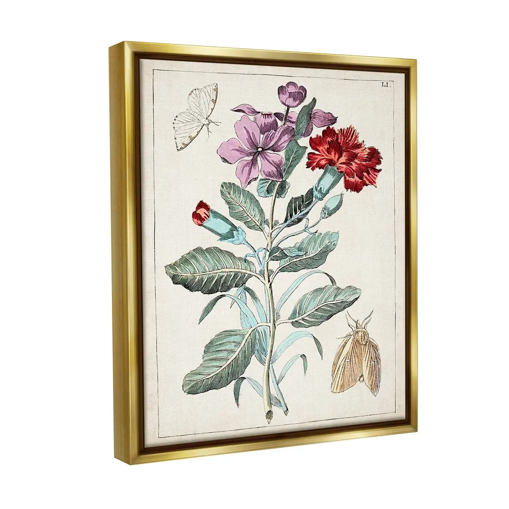 Stupell Vintage Moths With Flowers Framed Floater Canvas Wall Art Design By World Art Group - 17 X 21 - Gold