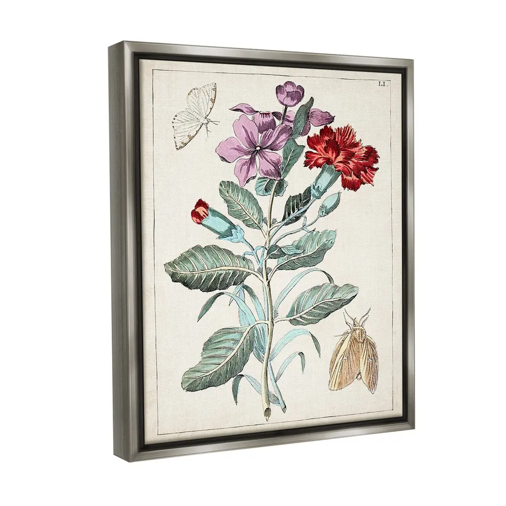 Stupell Vintage Moths With Flowers Framed Floater Canvas Wall Art Design By World Art Group - 17 X 21 - Grey
