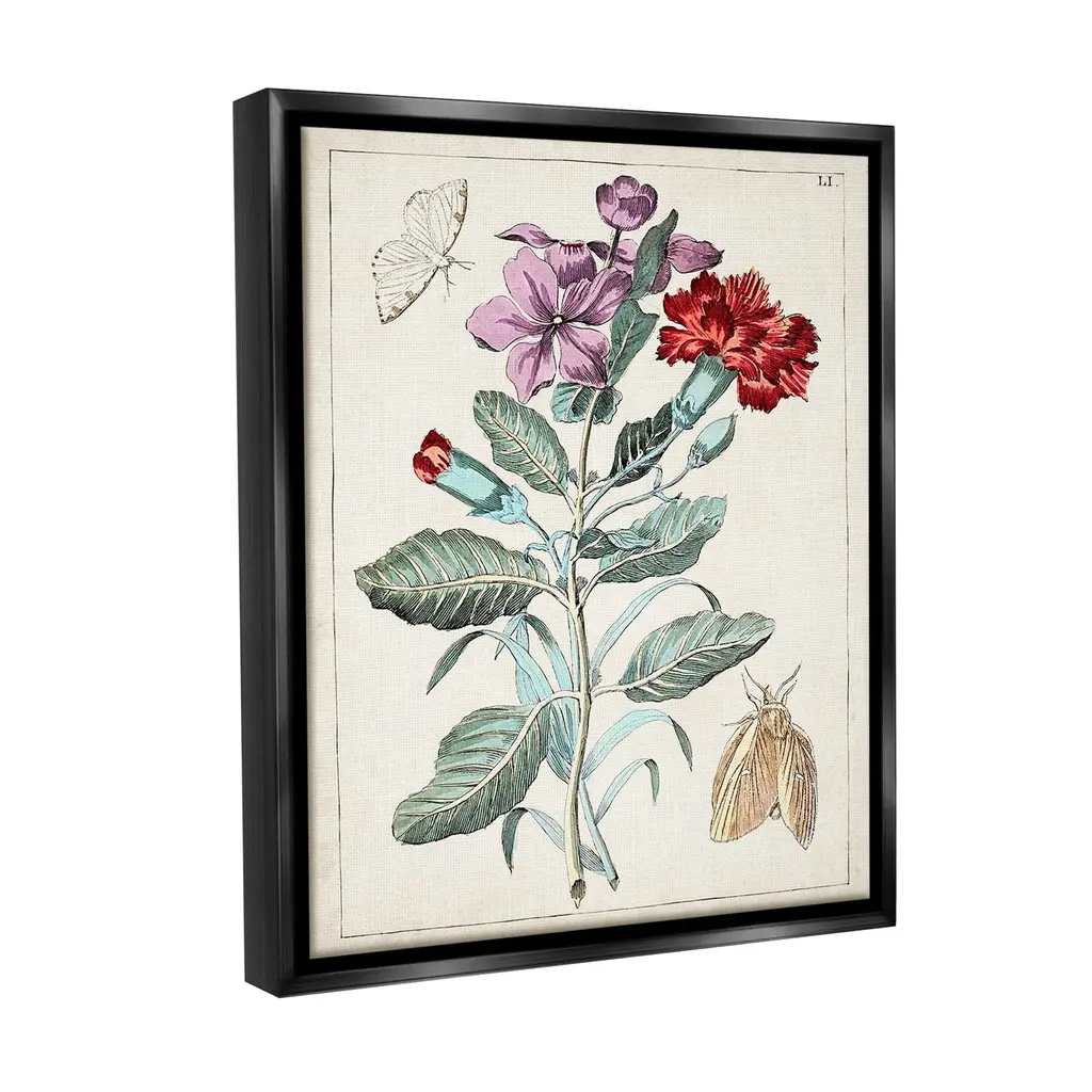 Stupell Vintage Moths With Flowers Framed Floater Canvas Wall Art Design By World Art Group - 25 X 31 - Black