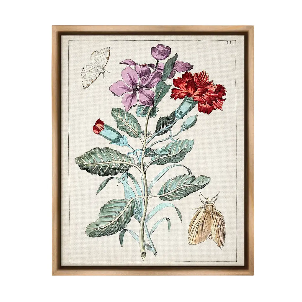 Stupell Vintage Moths With Flowers Framed Floater Canvas Wall Art Design By World Art Group - 25 X 31 - Grey