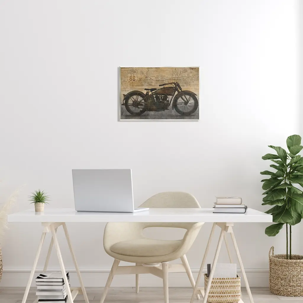 Our wall plaques start as high-quality lithograph prints mounted on durable 0.5-inch thick MDF wood. Each piece is hand finished and comes with a fresh layer of white foil on the sides to give it a crisp, clean look. Plaques arrive ready to hang without installation and come with removable plastic corners to keep them from damage in transit. Stupell Wall Art is made in the USA.Features: Dimensions: 15 x 0.5 x 10 InchesWall Plaque Sizes Include Standard: 15 x 0.5 x 10 Oversized: 19 x 0.5 x 13Wall Art is Ready to Hang with Hardware Free Hanging. No installation required. For Easy Set Up Lean or Layer Artwork on Shelf or Against Wall.All of our wall plaques start off as high quality lithograph prints that are then mounted on durable 0.5 inch thick MDF wood. Each piece is hand finished and comes with a fresh layer of foil on the sides to give it a crisp clean look. Made In USA.Artwork Relates To: Motorcycle, Transportation, Vehicle, Machine, Wheel, Vintage, CollageDesign by Dylan Matthews