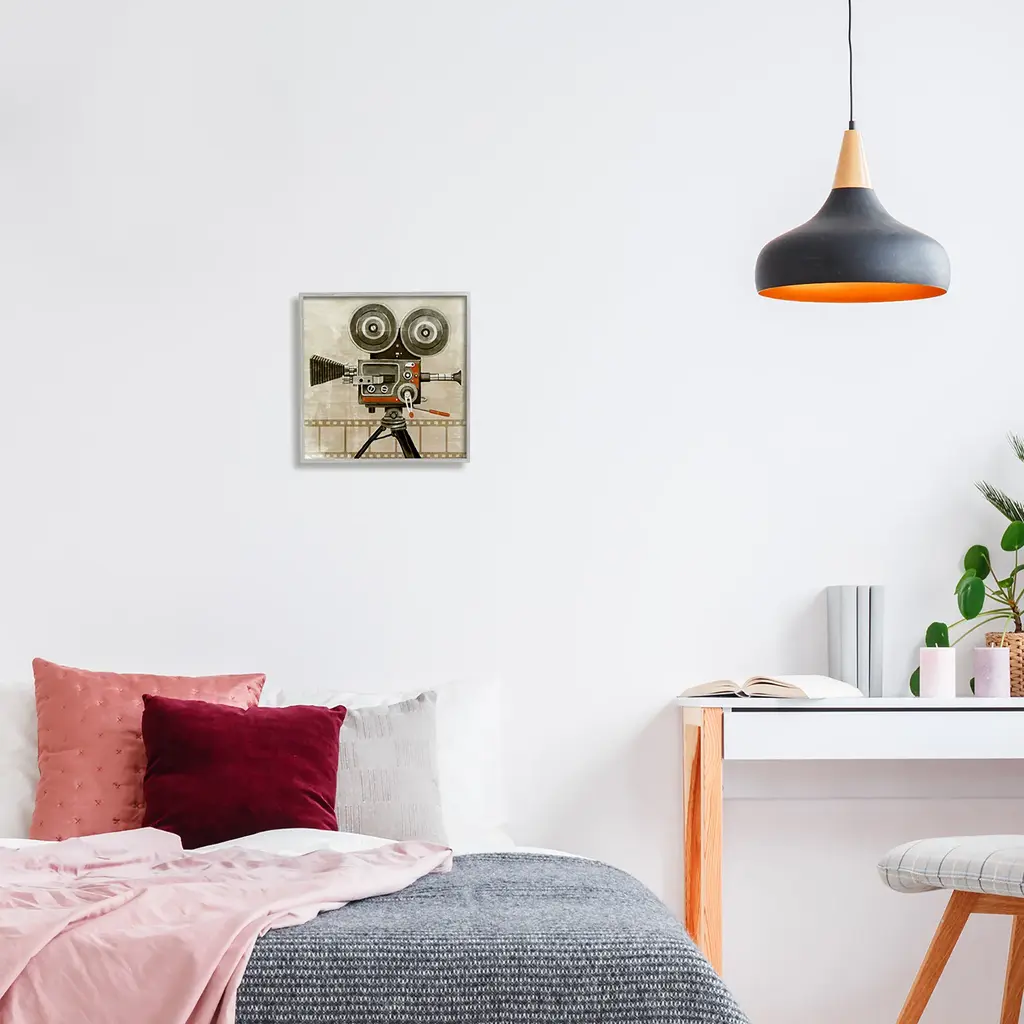 Add dimension to any room with our textured Framed Giclee Artwork. Our framed artwork is securely mounted into a 1.5-inch thick wood grain frame and ready to hang. Frames are available in three alluring styles: black, gray farmhouse and white. In addition, you should check out our oversized options if you want a statement piece. Stupell Wall Art is made in the USA.Features: Dimensions: 12 x 1.5 x 12 FramedFramed Giclee Sizes Include Standard: 12 x 1.5 x 12 Large: 17 x 1.5 x 17 Oversized: 24 x 1.5 x 24Wall Art is Ready to Hang - No Installation or Hardware Needed. For Easy Set Up Lean or Layer Artwork on Shelf or Against Wall.Our giclée prints are carefully mounted on a durable MDF backing, and then perfectly finished in a 1.5 inch thick woodgrain frame. Mounted frame colors include black, gray farmhouse and white. Made In USA.Artwork Relates To: Tripod, Camera, Video Camera, Vintage, Movies, Movie TheaterDesign by Grace Popp