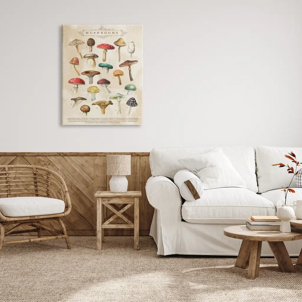 We create our stretched canvas to the highest standards. Using only the highest quality inks and canvas on Mimaki printers, we hand-cut and stretch each piece over a 1.5-inch thick wooden frame for hanging. As a result, the art comes ready to hang on the sturdy ledge with no installation required. Stupell Wall Art is made in the USA.Features: Dimensions: 16 x 1.5 x 20 InchesStretched Canvas Sizes Include Standard: 16 x 1.5 x 20 Large: 20 x 1.5 x 30 X-Large: 30 x 1.5 x 40 Oversized: 36 x 1.5 x 48Wall Art is Ready to Hang - No Installation or Hardware Needed. For Easy Set Up Lean or Layer Artwork on Shelf or Against Wall.Our stretched canvas is created with the highest standards. We use only the highest quality inks and canvas on our in house Mimaki printers, and then hand cut and stretch each piece over a 1.5 inch thick wooden frame for hanging. Made In USA.Artwork Relates To: Fungus, Plant, Agaric, Mushroom, Amanita, Nature, Woodland, DiagramDesign by Amylee Weeks