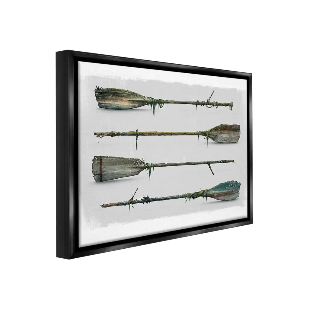 Elevate your home or office to the next level with Stupell Framed Floating Canvas Wall Art. Our premium hand-stretched canvas is mounted securely into a sturdy lightweight frame. The museum-style gap between the wrapped canvas and the box frame gives the illusion of floating artwork. Stupell Wall Art is made in the USA.Features: Dimensions: 21 x 1.7 x 17 Frame, 20 x 1.5 x 16 Canvas ArtFloating Frame Canvas Products are available in sizes 21"x17" and 31"x25". All Floating Frame Canvas Products have a 1.7" Depth.Wall Art is Ready to Hang with Hardware Free Hanging. No Installation required. For Easy Set Up Lean or Layer Artwork on Shelf or Against Wall. Artwork is Permently Fixed into the Frame.Our elevated 1.7" Thick Floating Frame is the perfect complement to our canvas style Wall Art. We use only the highest quality inks in house with industry leading printing solutions. Canvas is hand stretched over a durable wood foundation and then mounted securly into a Modern Box Frame. Made in the USA.Artwork Relates To: Oars, Paddle, Rustic, Vintage, Ship, Boat, Boating, Nautical, MaritimeDesign by Vlad Mel