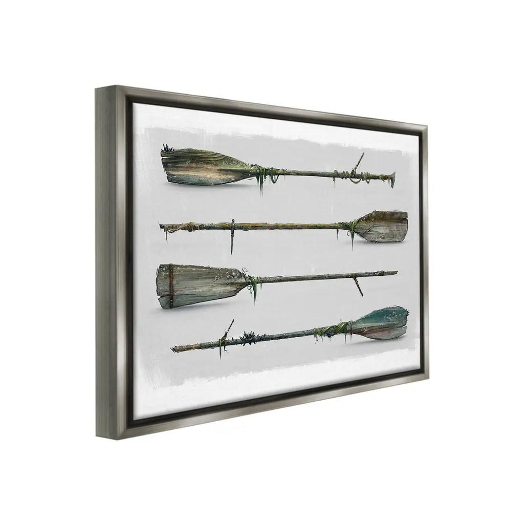 Elevate your home or office to the next level with Stupell Framed Floating Canvas Wall Art. Our premium hand-stretched canvas is mounted securely into a sturdy lightweight frame. The museum-style gap between the wrapped canvas and the box frame gives the illusion of floating artwork. Stupell Wall Art is made in the USA.Features: Dimensions: 21 x 1.7 x 17 Frame, 20 x 1.5 x 16 Canvas ArtFloating Frame Canvas Products are available in sizes 21"x17" and 31"x25". All Floating Frame Canvas Products have a 1.7" Depth.Wall Art is Ready to Hang with Hardware Free Hanging. No Installation required. For Easy Set Up Lean or Layer Artwork on Shelf or Against Wall. Artwork is Permently Fixed into the Frame.Our elevated 1.7" Thick Floating Frame is the perfect complement to our canvas style Wall Art. We use only the highest quality inks in house with industry leading printing solutions. Canvas is hand stretched over a durable wood foundation and then mounted securly into a Modern Box Frame. Made in the USA.Artwork Relates To: Oars, Paddle, Rustic, Vintage, Ship, Boat, Boating, Nautical, MaritimeDesign by Vlad Mel