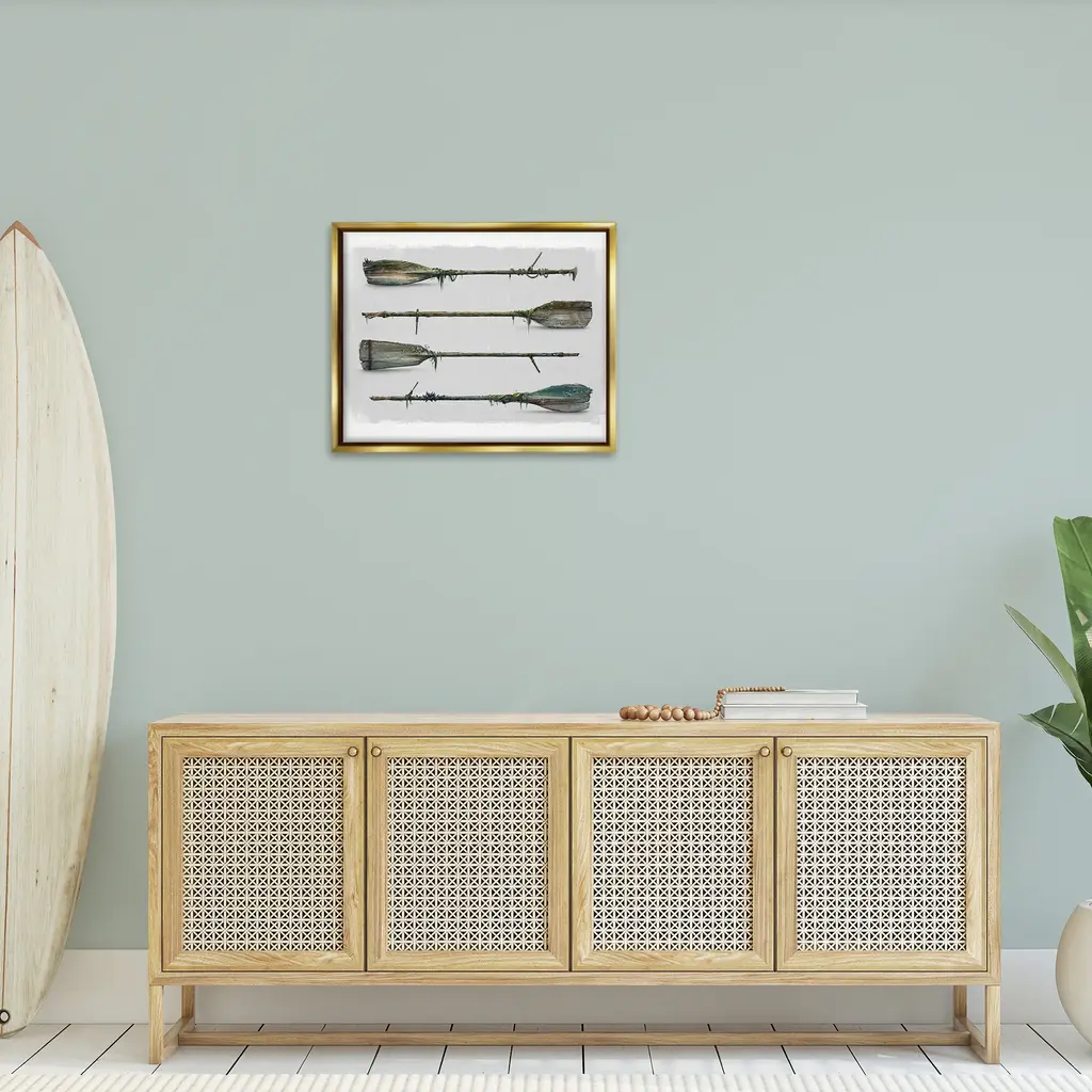 Elevate your home or office to the next level with Stupell Framed Floating Canvas Wall Art. Our premium hand-stretched canvas is mounted securely into a sturdy lightweight frame. The museum-style gap between the wrapped canvas and the box frame gives the illusion of floating artwork. Stupell Wall Art is made in the USA.Features: Dimensions: 21 x 1.7 x 17 Frame, 20 x 1.5 x 16 Canvas ArtFloating Frame Canvas Products are available in sizes 21"x17" and 31"x25". All Floating Frame Canvas Products have a 1.7" Depth.Wall Art is Ready to Hang with Hardware Free Hanging. No Installation required. For Easy Set Up Lean or Layer Artwork on Shelf or Against Wall. Artwork is Permently Fixed into the Frame.Our elevated 1.7" Thick Floating Frame is the perfect complement to our canvas style Wall Art. We use only the highest quality inks in house with industry leading printing solutions. Canvas is hand stretched over a durable wood foundation and then mounted securly into a Modern Box Frame. Made in the USA.Artwork Relates To: Oars, Paddle, Rustic, Vintage, Ship, Boat, Boating, Nautical, MaritimeDesign by Vlad Mel