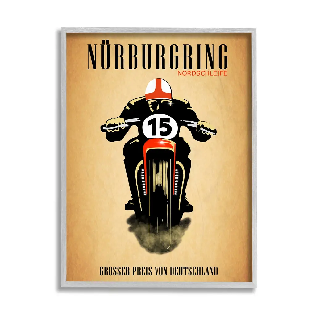 Stupell Vintage Nürburgring German Motorcycle Race Advertisement Framed Wall Art - 16 X 20 - Grey