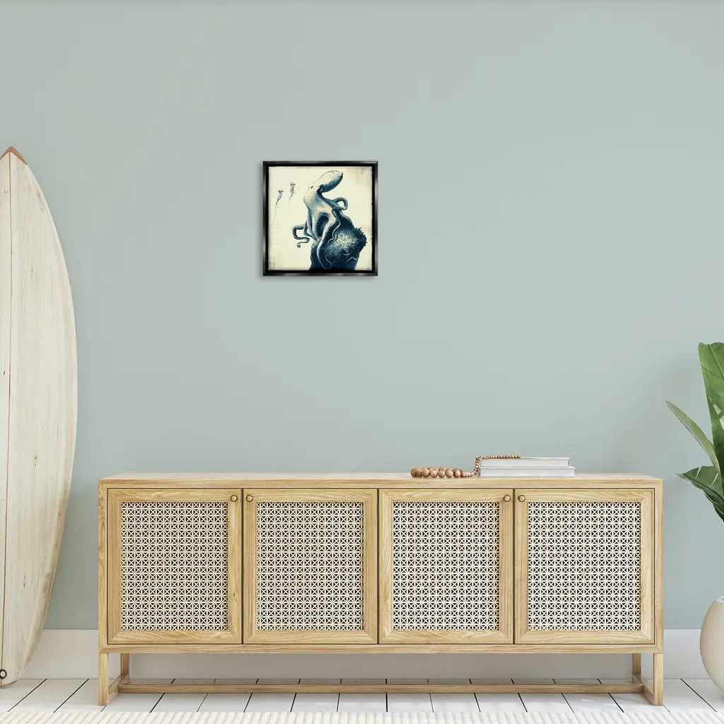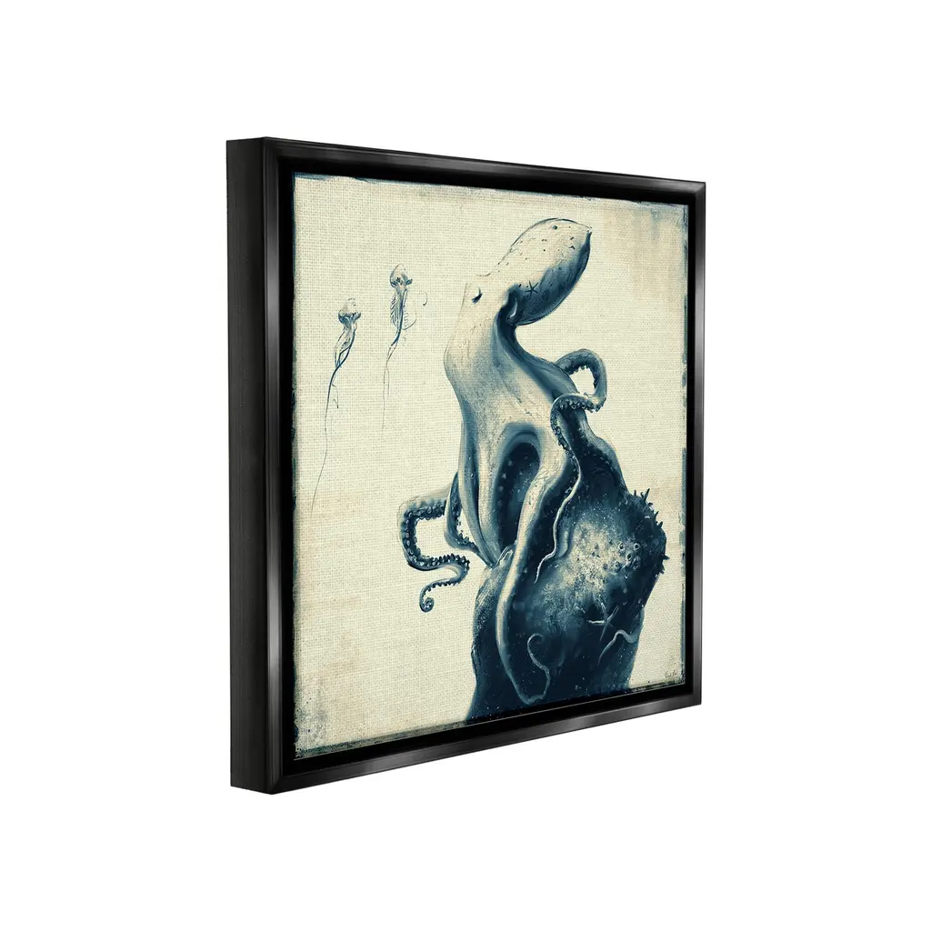 Elevate your home or office to the next level with Stupell Framed Floating Canvas Wall Art. Our premium hand-stretched canvas is mounted securely into a sturdy lightweight frame. The museum-style gap between the wrapped canvas and the box frame gives the illusion of floating artwork. Stupell Wall Art is made in the USA.Features: Dimensions: 18 x 1.7 x 18 Frame, 17 x 1.5 x 17 Canvas ArtFloating Frame Canvas Products are available in sizes 18"x18" and 25"x25". All Floating Frame Canvas Products have a 1.7" Depth.Wall Art is Ready to Hang with Hardware Free Hanging. No Installation required. For Easy Set Up Lean or Layer Artwork on Shelf or Against Wall. Artwork is Permently Fixed into the Frame.Our elevated 1.7" Thick Floating Frame is the perfect complement to our canvas style Wall Art. We use only the highest quality inks in house with industry leading printing solutions. Canvas is hand stretched over a durable wood foundation and then mounted securly into a Modern Box Frame. Made in the USA.Artwork Relates To: Animal, Sea Life, Invertebrate, Octopus, Marine, Ocean, Nautical, BeachDesign by Vlad Mel
