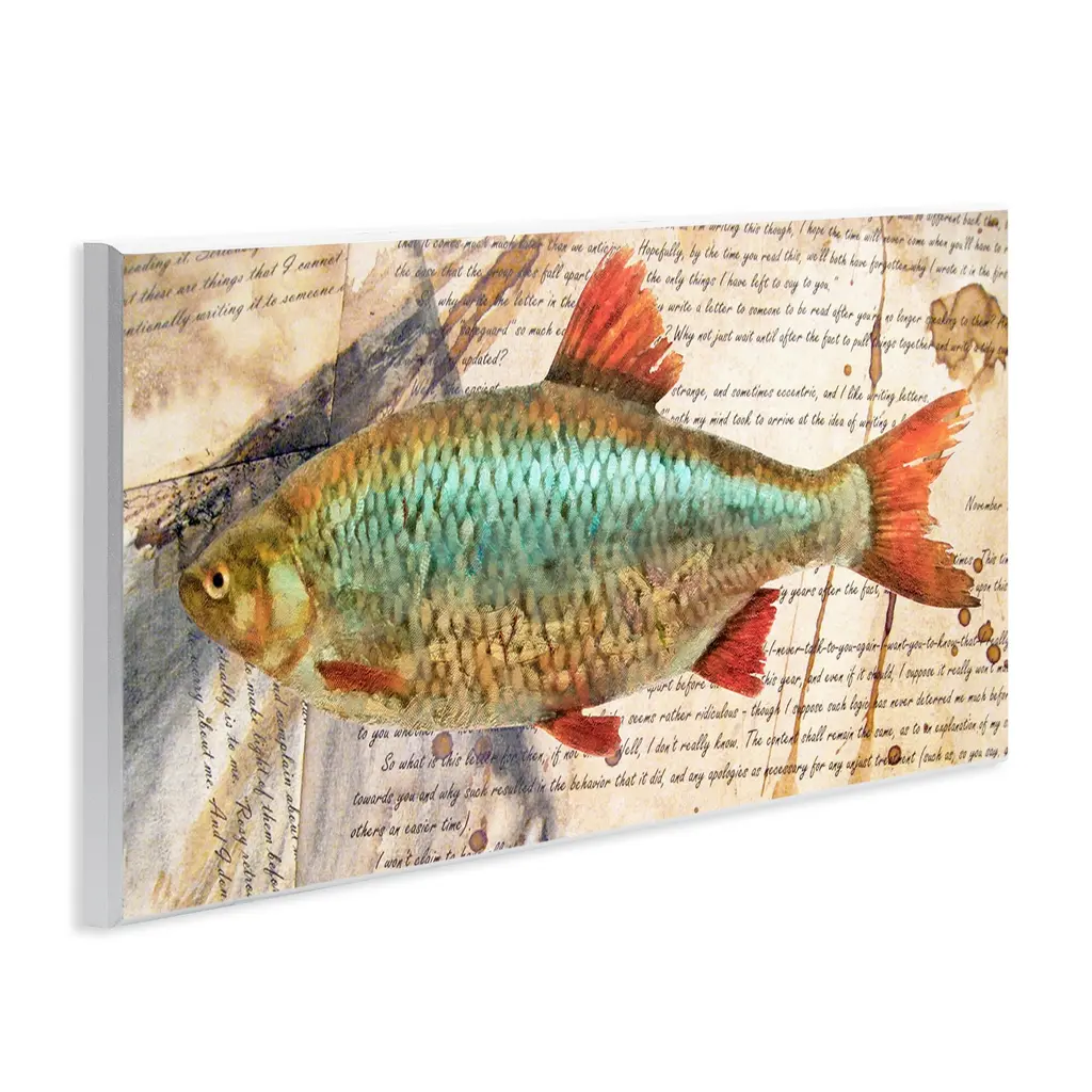 Stupell Vintage Pages & Fish Wall Plaque Art Design By Alonzo Saunders - 17 X 7